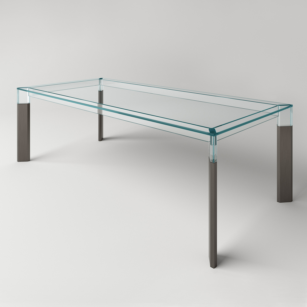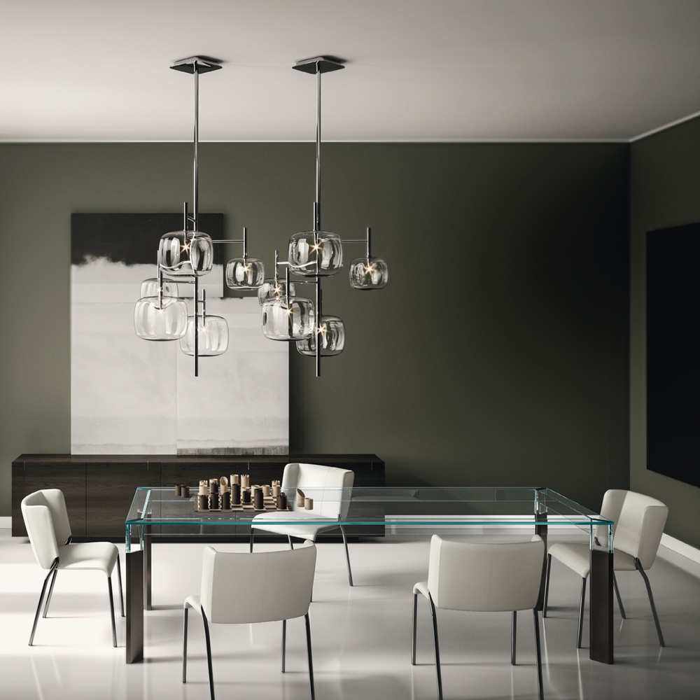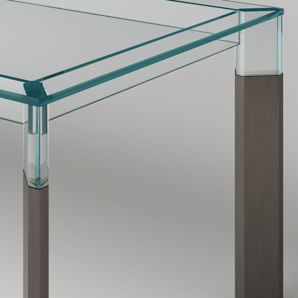 Table à manger entièrement fabriquée en Italie avec plateau en verre et pieds en verre et bois massif . Une solution d'ameublement intemporelle, adaptée à différents styles, capable de souligner l'union parfaite entre l'élégance du verre et la grandeur du bois, en favorisant sa polyvalence d'utilisation dans les espaces domestiques. Un grand protagoniste du salon caractérisé par des techniques de construction complexes utilisées par des artisans italiens qualifiés pour créer une table à manger de haute qualité et particulièrement fonctionnelle. Le résultat est une harmonie de lignes et de formes simples qui créent l'idée parfaite pour meubler des salles à manger ou des cuisines avec un style contemporain d'une manière exclusive et raffinée, conquérant le centre d'attention et rendant les moments en compagnie uniques.