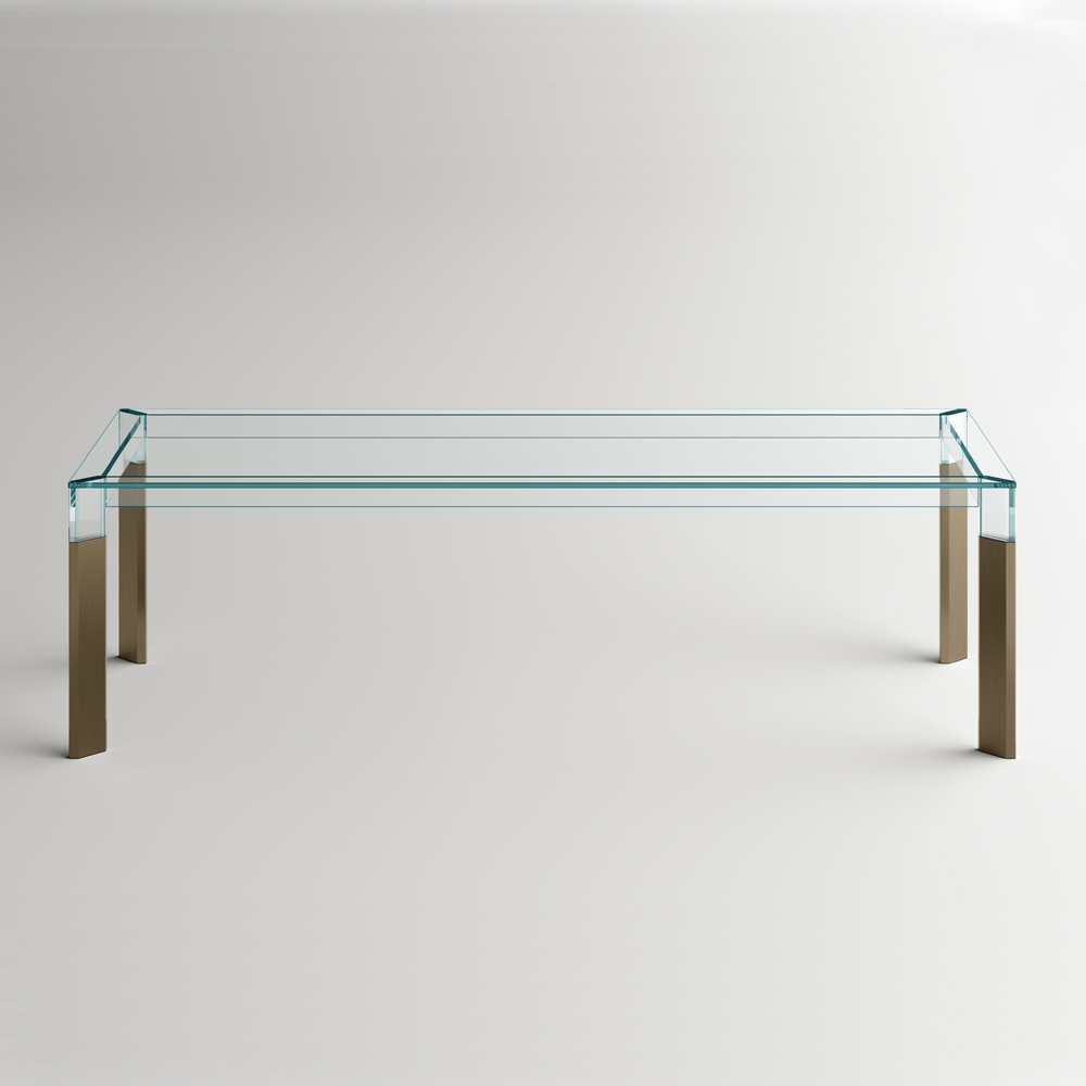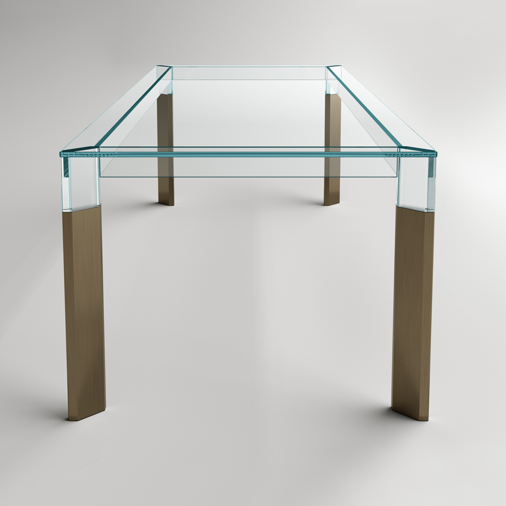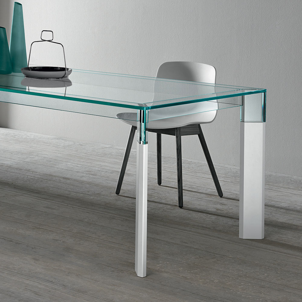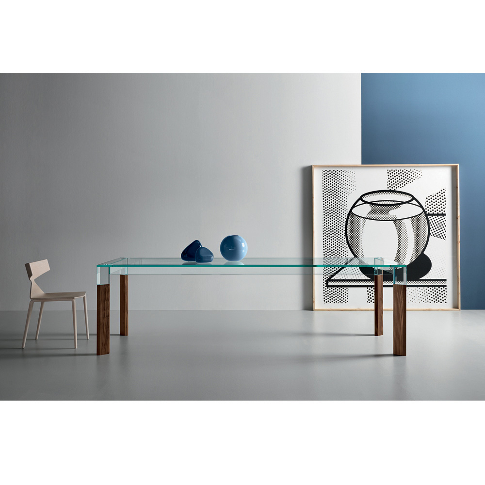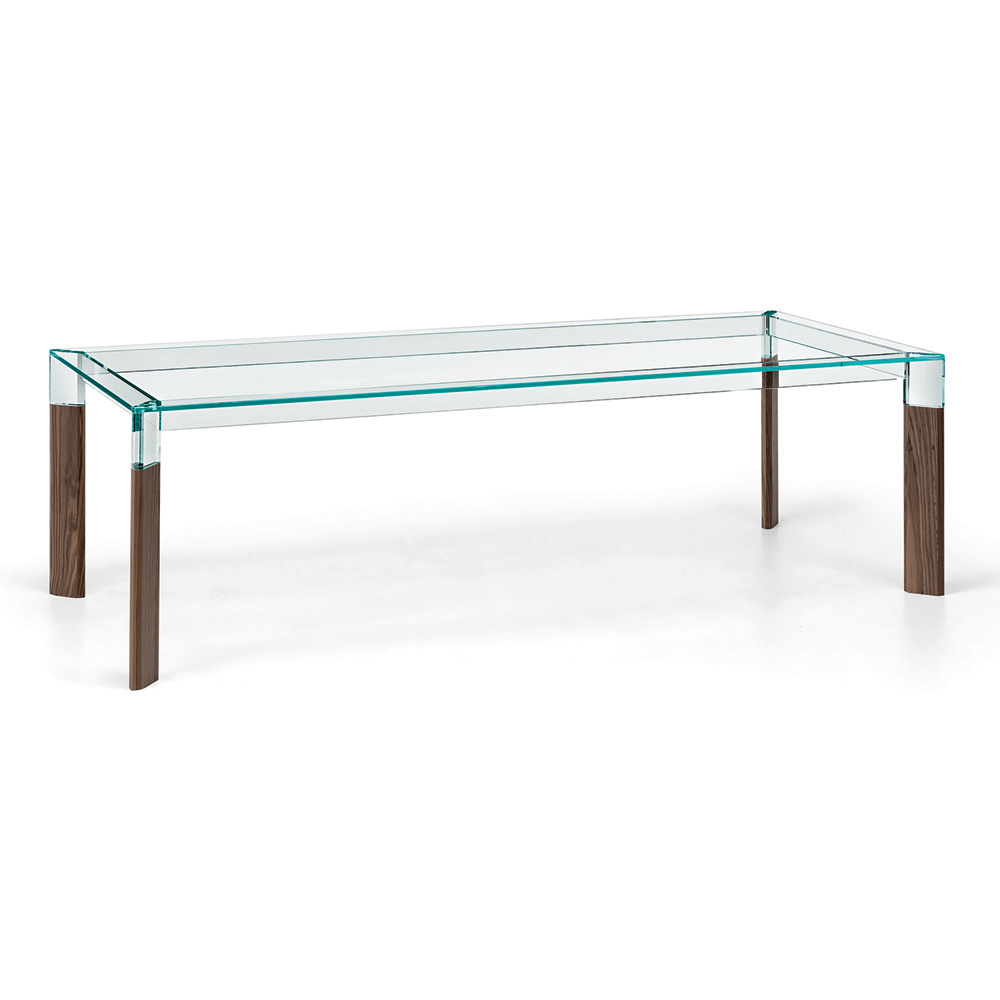 Table de cuisine en verre extra-clair avec pieds en bois Made in Italy - Super