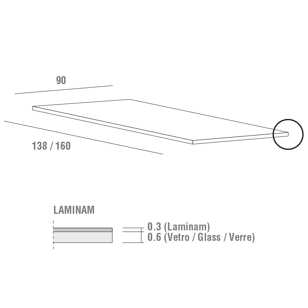 - L 160/200/240 x P 90 x H 76 cm.