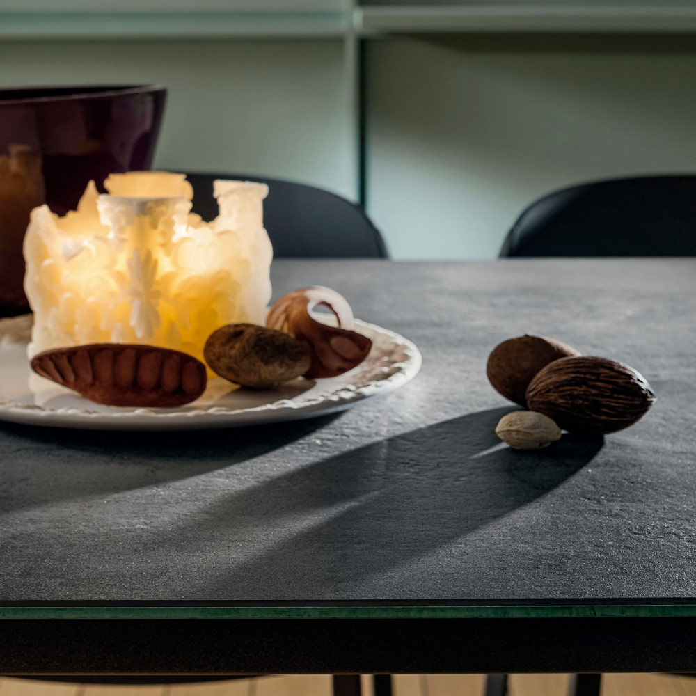surface céramique révolutionnaire créée à partir d'un mélange de grès cérame qui permet d'obtenir un plateau résistant aux solvants, désinfectants et détergents ainsi qu'aux rayures et aux abrasions profondes. Il est également particulièrement