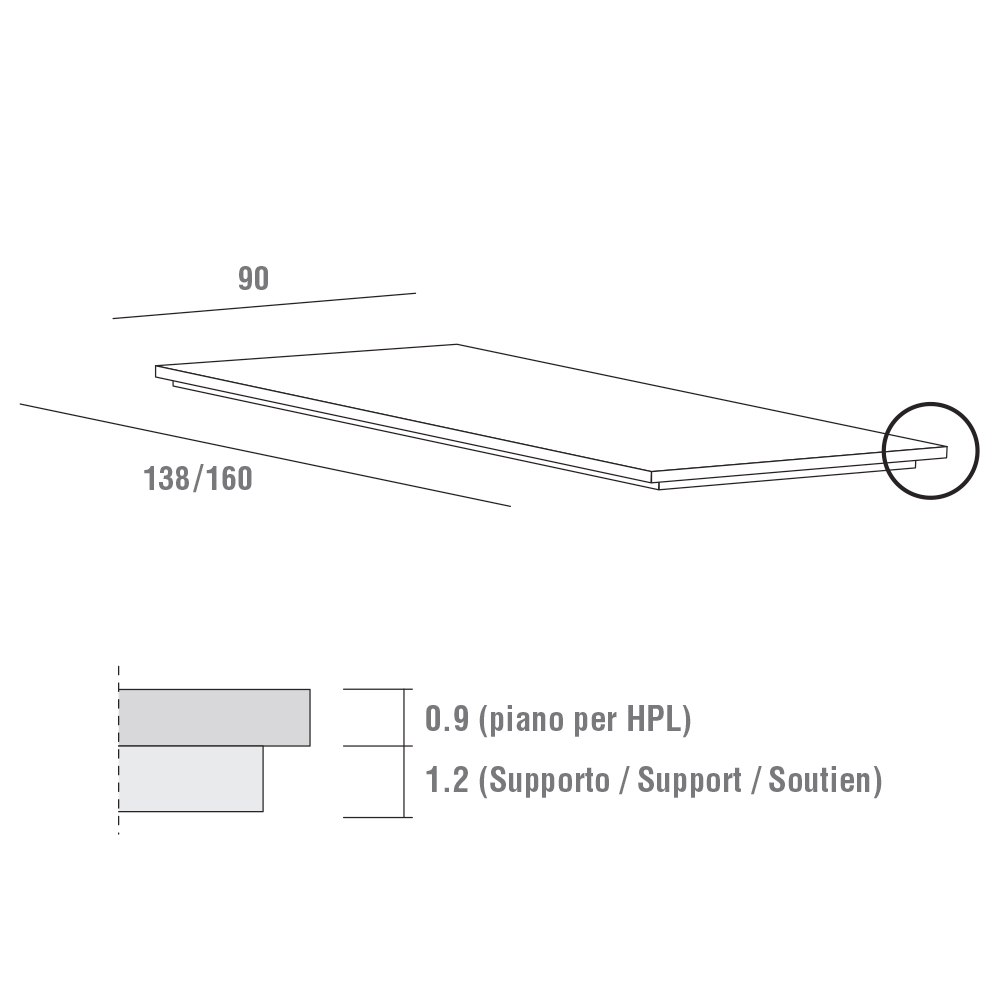 plateau extensible qui permet d'étendre la surface d'appui jusqu'à un maximum de 240 cm grâce à