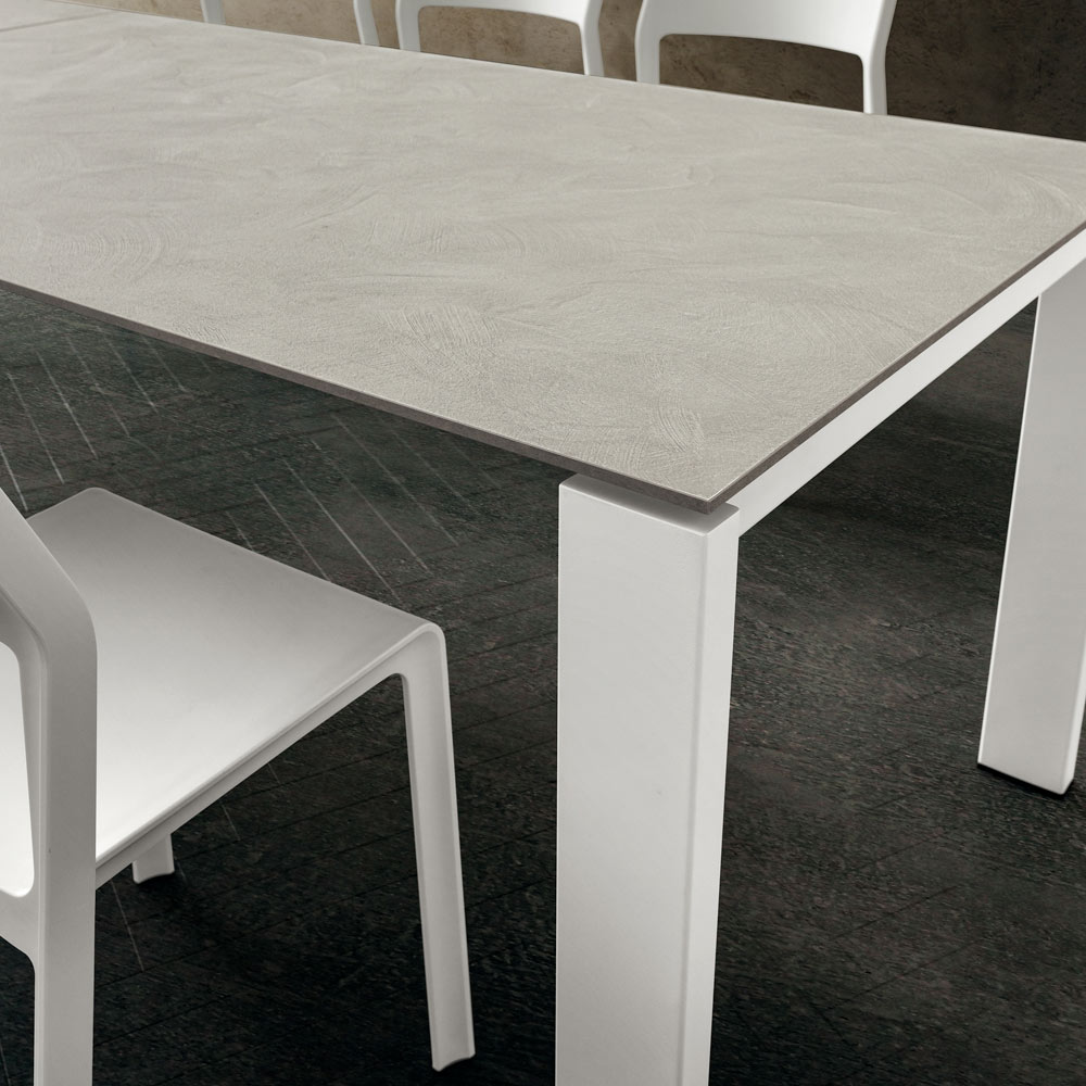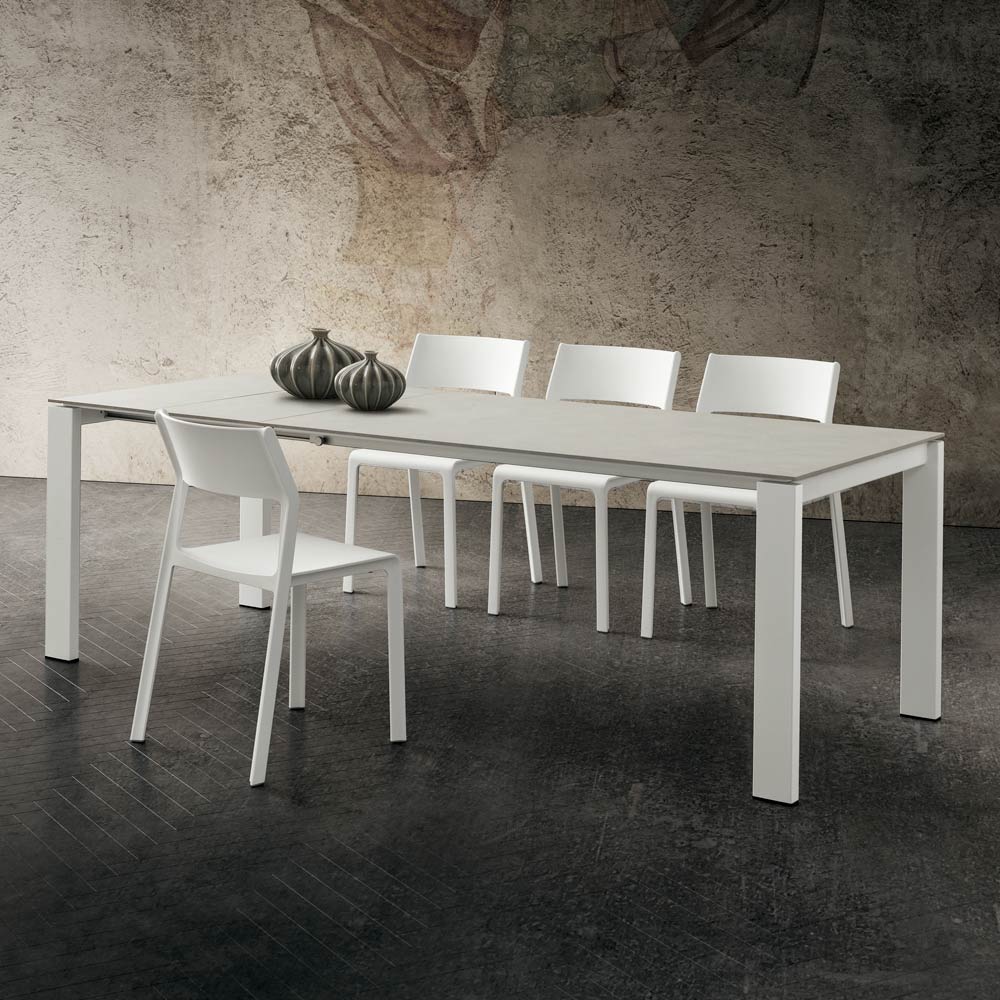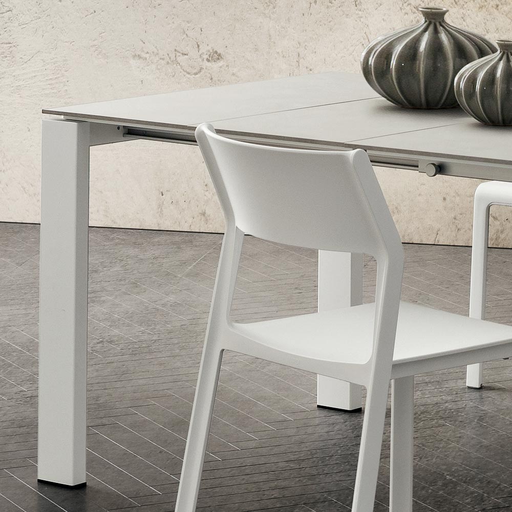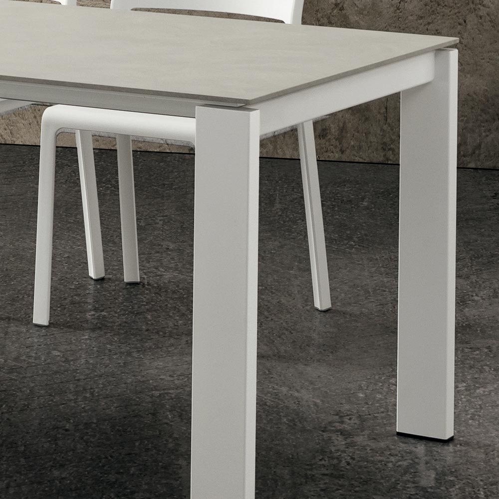 Table à manger extensible en hpl Made in Italy de haute qualité et métal laqué blanc.