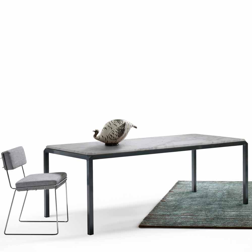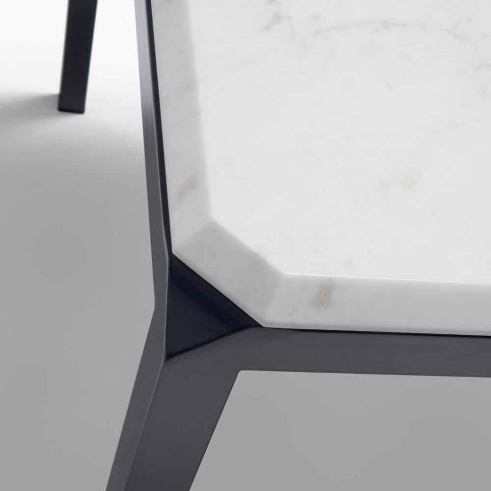 Table design en marbre blanc Bebop fabriquée en Italie L'attention méticuleuse aux détails, la qualité de fabrication, le contraste entre la structure en fer et le plateau en marbre identifient la table Bebop.
