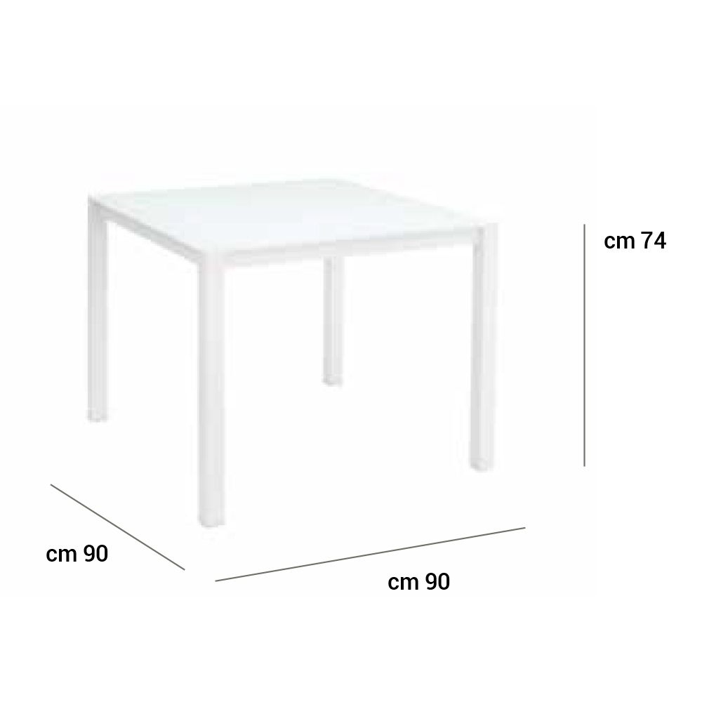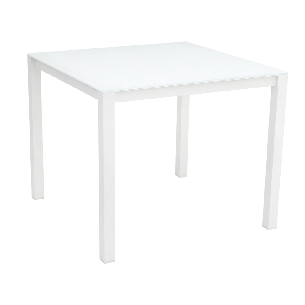Table à manger de jardin en aluminium peint à la poudre époxy et plateau en verre laqué au dos.Cette table se caractérise par ses fortes formes carrées qui parviennent à s'intégrer à tout type d'environnement extérieur contemporain, lui donnant un fort caractère moderne et personnel . Ses matériaux de qualité sont conçus pour être résistants et durables.