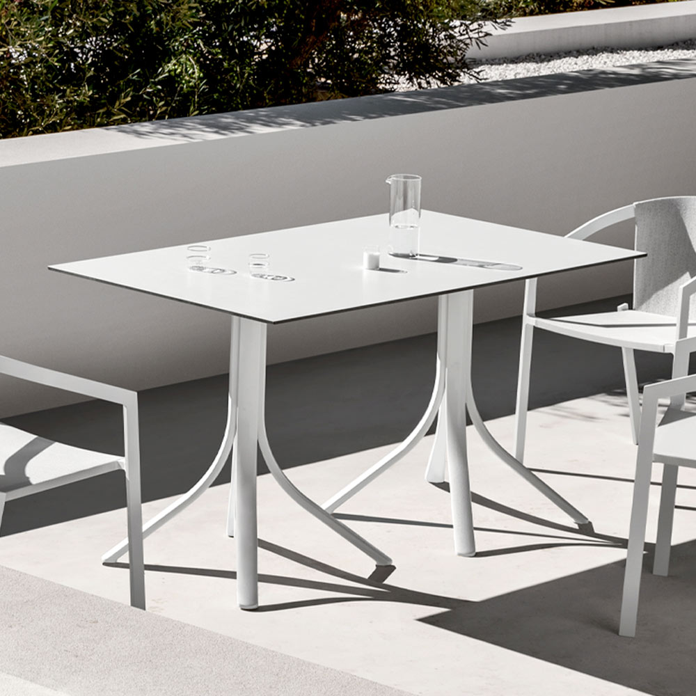 Table d'extérieur au design rectangulaire en aluminium et plateau en hpl en 2 finitions, article de haute qualité fabriqué en Italie.
