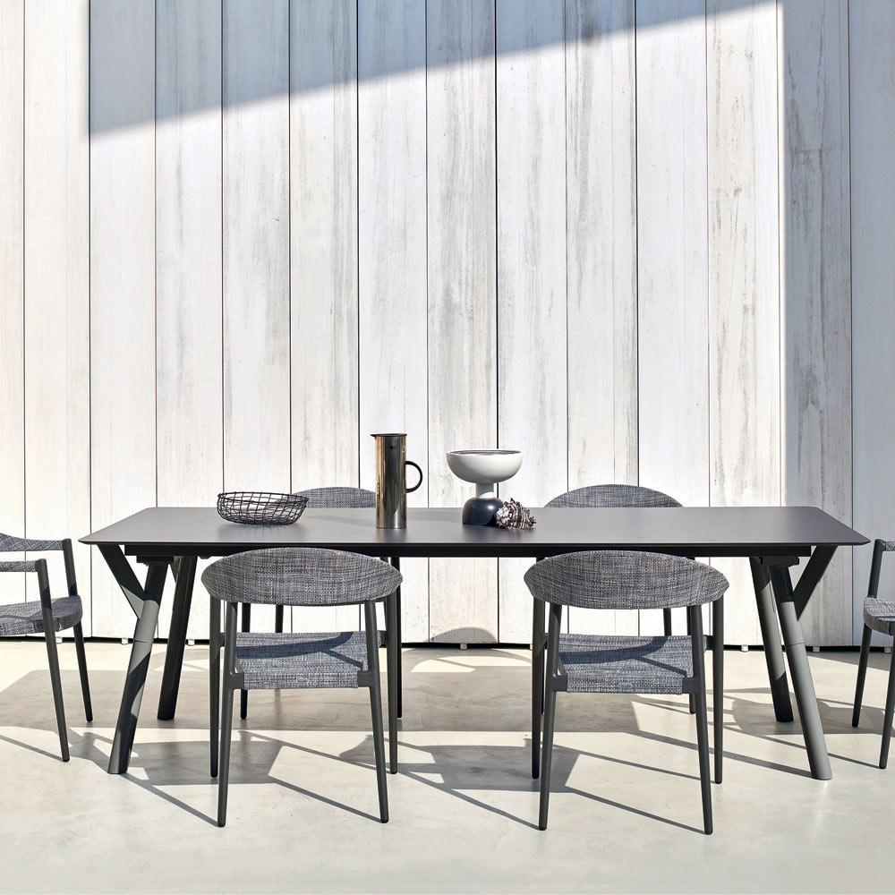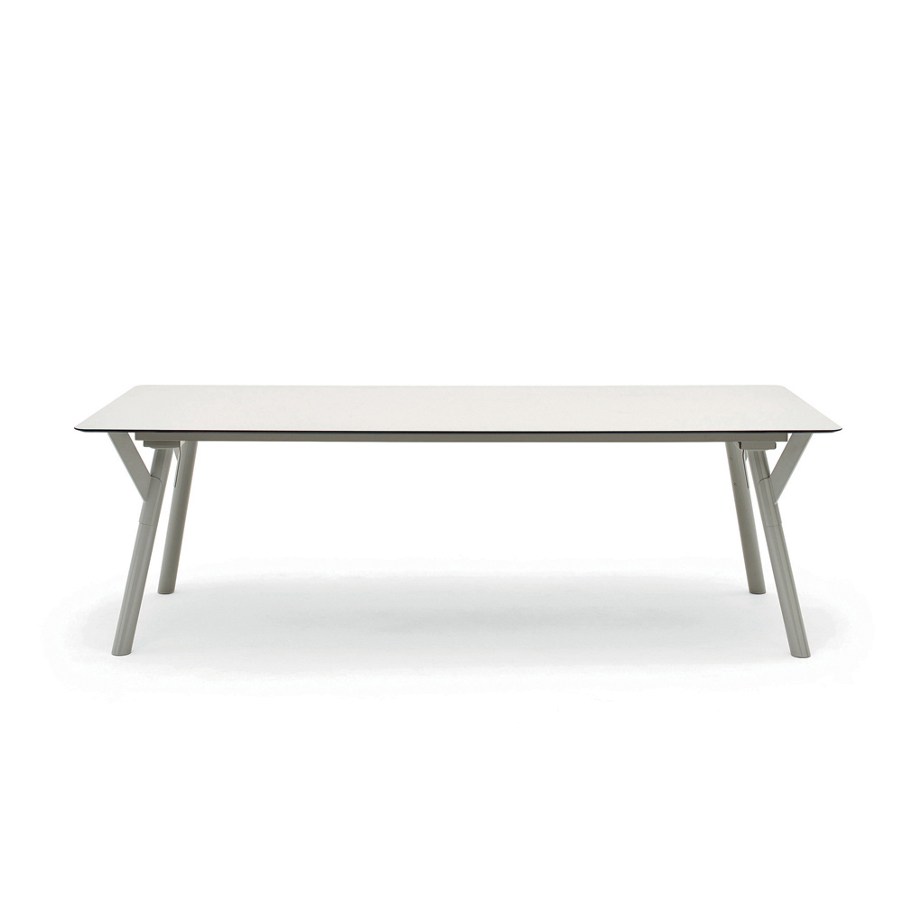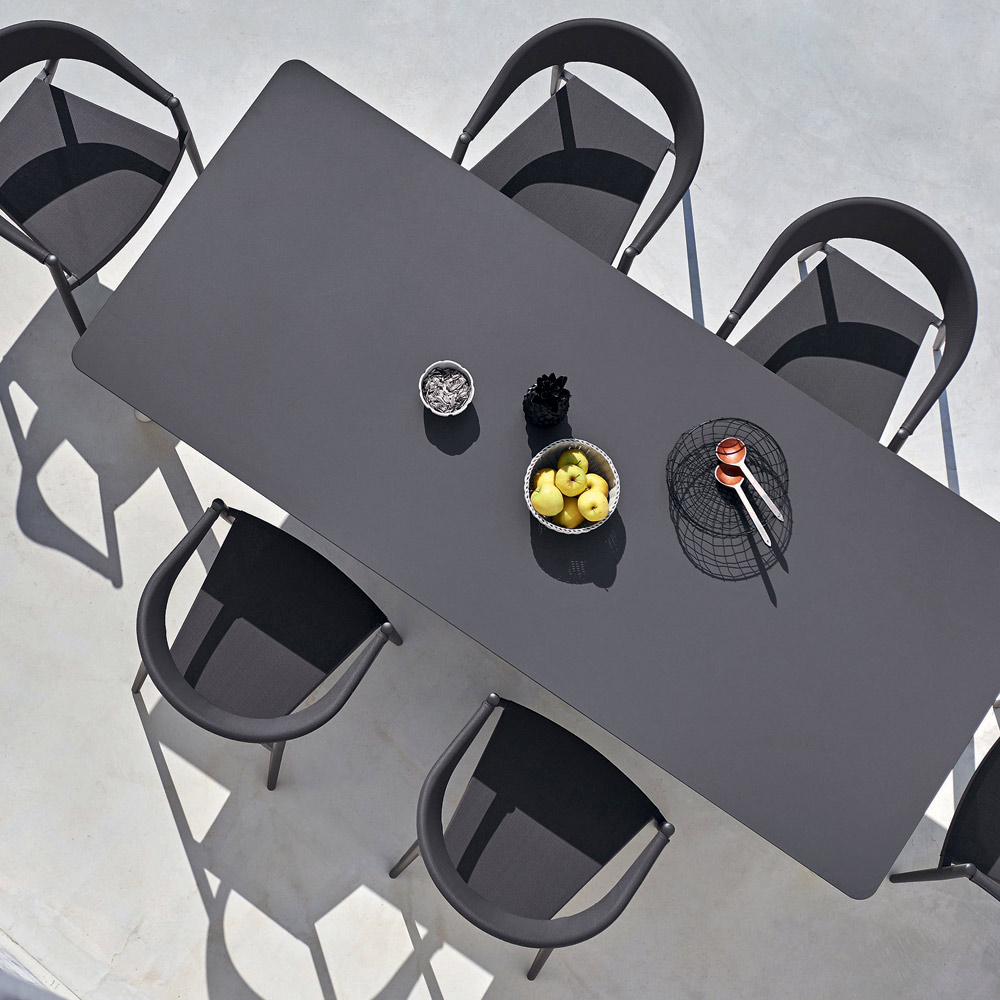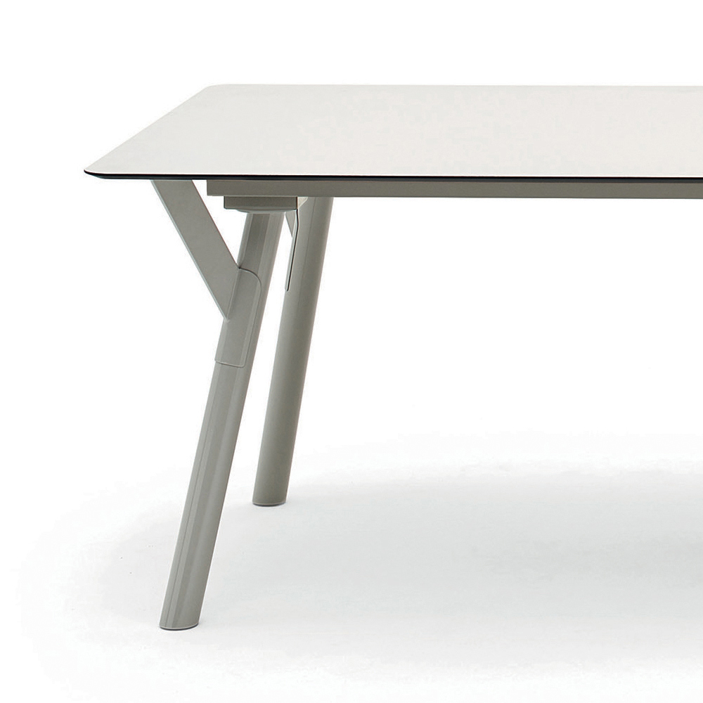 Link est une table au design moderne avec structure (support + pieds) en acier inoxydable peint. Le plateau est disponible en HPL (épaisseur 12 mm) ou en teck (épaisseur 30 mm). Grâce à sa conception polyvalente, elle peut être utilisée à la fois comme table d'extérieur extensible et pour meubler des environnements intérieurs. Différentes finitions sont disponibles pour personnaliser la structure, les pieds et le plateau.