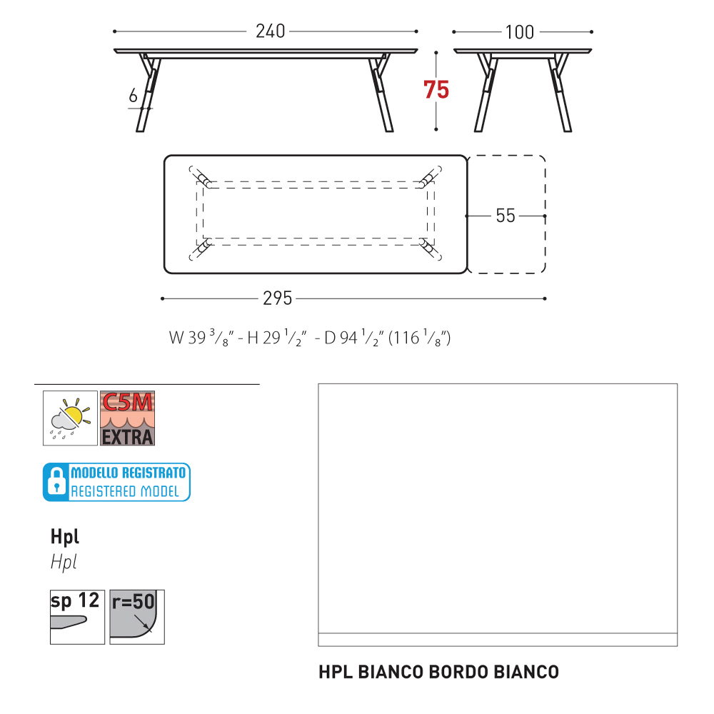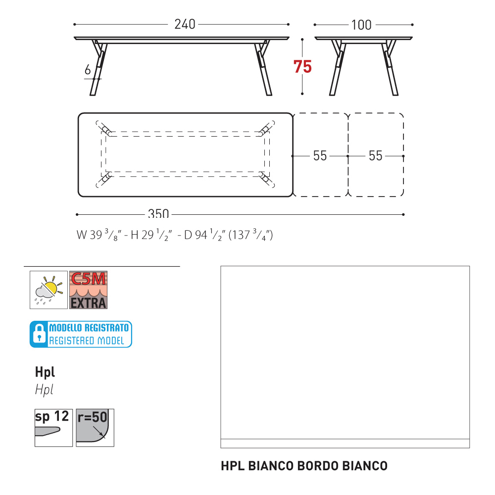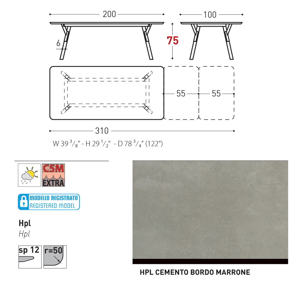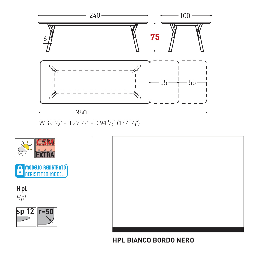 Link est une table au design moderne avec structure (support + pieds) en acier inoxydable peint. Le plateau est disponible en HPL (épaisseur 12 mm) ou en teck (épaisseur 30 mm). Grâce à sa conception polyvalente, elle peut être utilisée à la fois comme table d'extérieur extensible et pour meubler des environnements intérieurs. Différentes finitions sont disponibles pour personnaliser la structure, les pieds et le plateau.