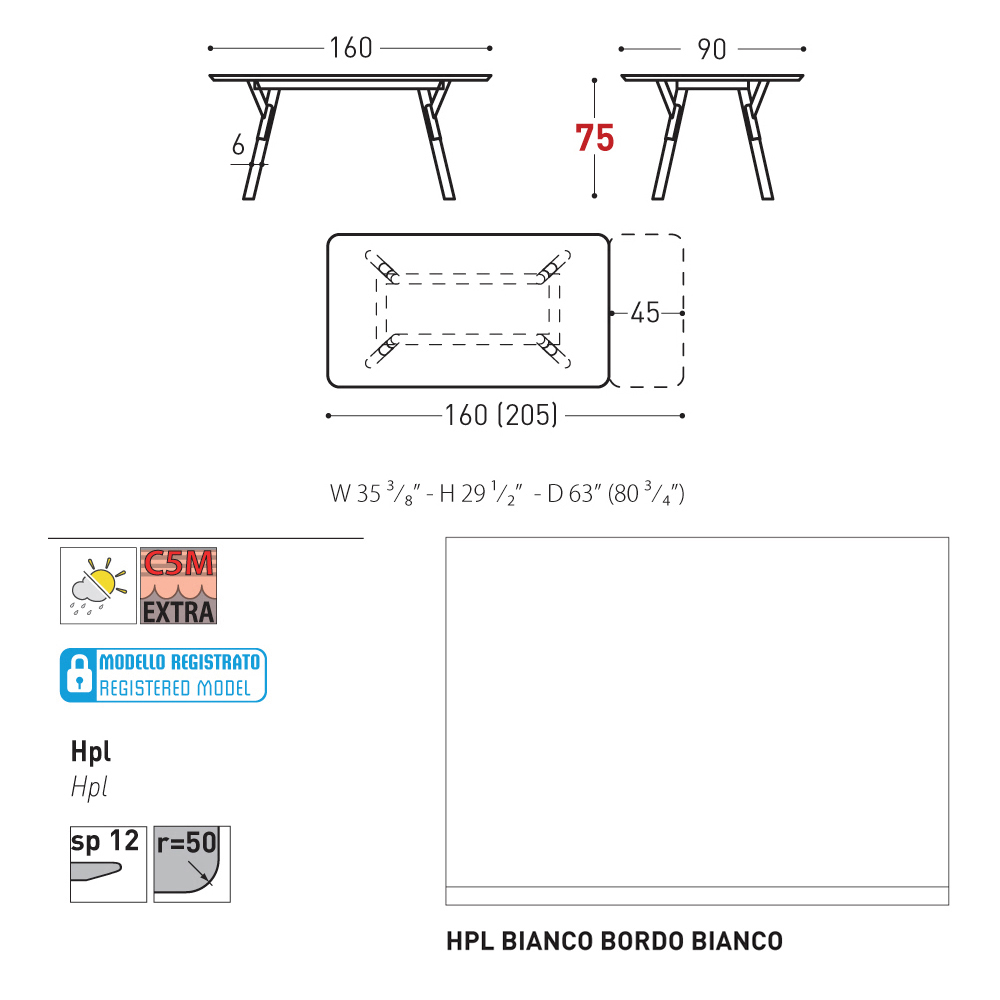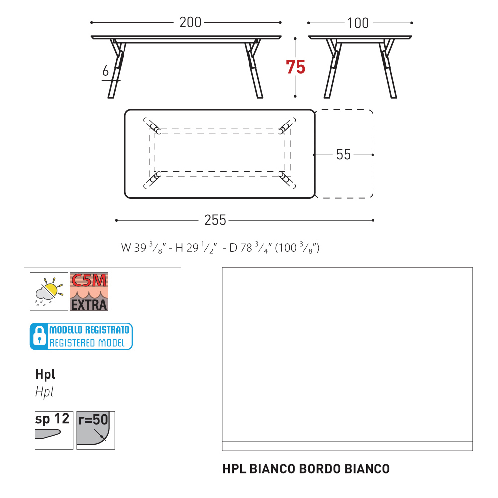 Caractéristiques HPL : stratifiés haute pression. Ils sont constitués de nombreuses couches de papier (70%) imprégnées de résines thermodurcissables (30%) et compactées par l'action combinée de la chaleur (environ 150 degrés) et de la haute pression (supérieure à 7Mpa) pendant environ 45-50 minutes. Le résultat est un produit stable, non réactif, non poreux et à haute densité, avec des caractéristiques physiques et chimiques de haute résistance mécanique (plage de température contrôlée +80 ; -40 degrés, sur un temps limité de moins de 30 secondes à des températures extrêmes). températures), l'exposition à la lumière et l'exposition aux changements de température, même en milieu marin.
