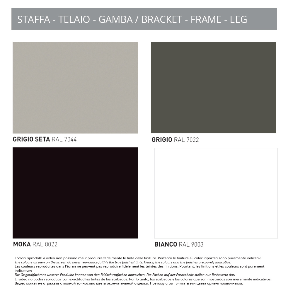 Comment choisir la finition : sélectionnez la taille et la variante de dessus souhaitées dans le menu déroulant. Consultez le nuancier et indiquez le code de la finition désirée pour la structure et les pattes dans la case appropriée.