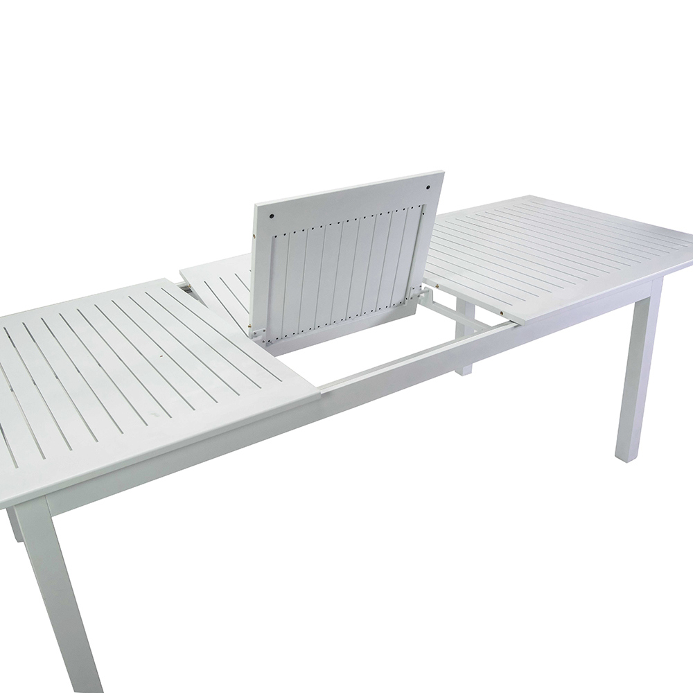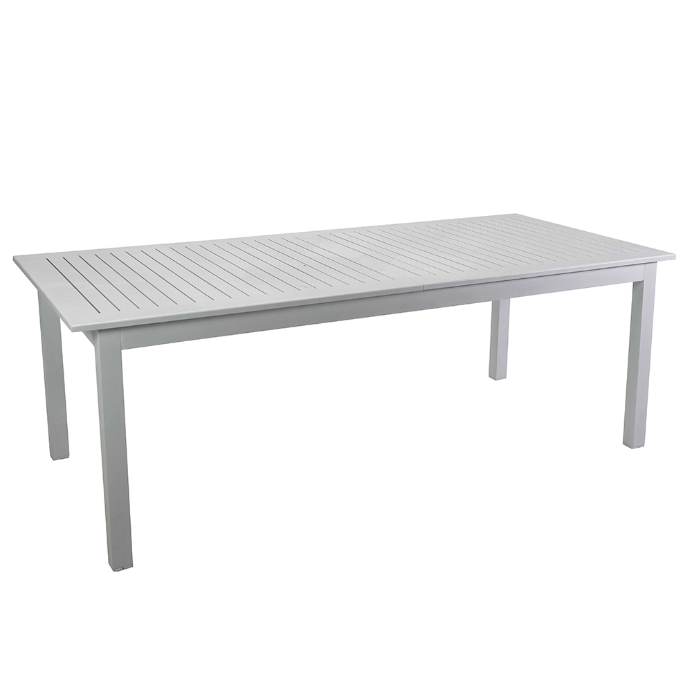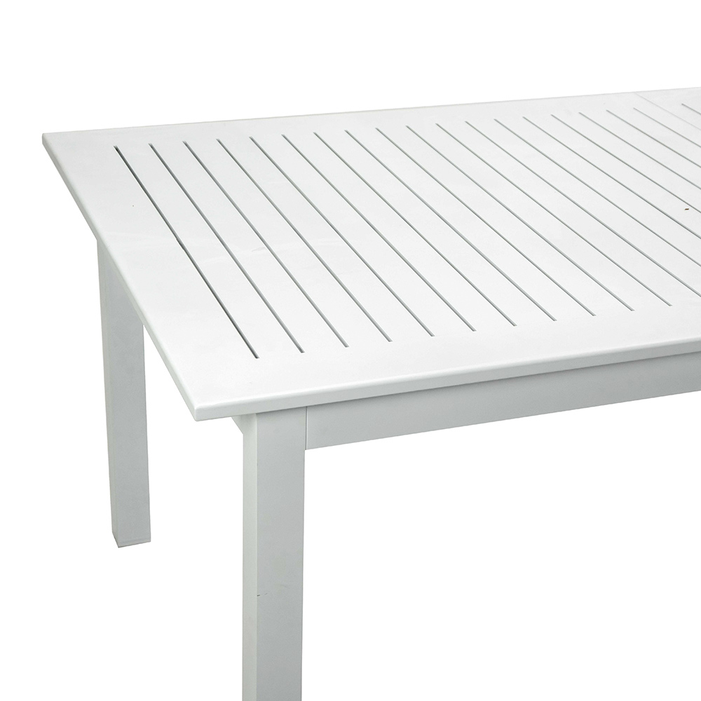 Cette table extensible en aluminium est la solution parfaite pour accueillir à la fois les petites réunions de famille et les grandes célébrations en plein air. Son cadre en aluminium garantit la durabilité et la stabilité, résistant aux éléments sans effort. Avec un design simple et épuré, elle s'intègre parfaitement à tout environnement extérieur, d'un patio moderne à un jardin plus classique.