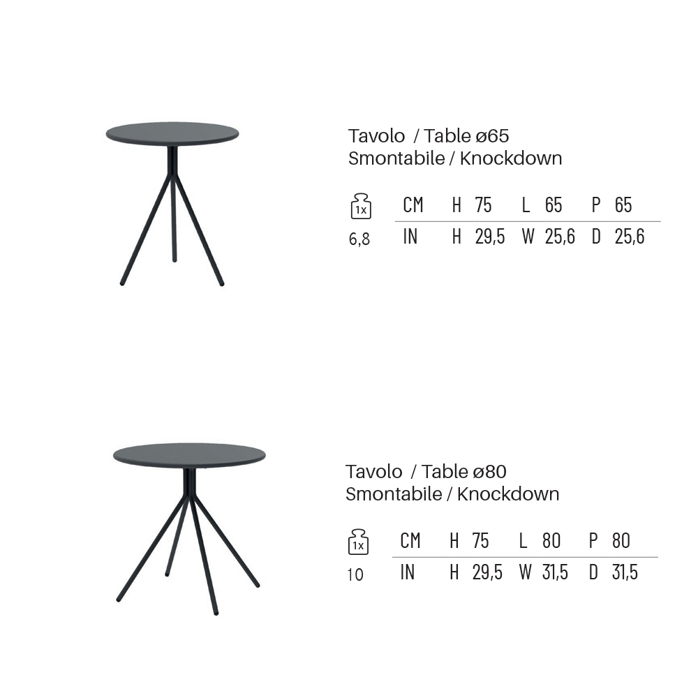 Utilisation et entretien : En hiver, il est conseillé de stocker le produit dans un endroit fermé et sec afin d'éviter la condensation due à l'humidité. Si les produits sont situés près du bord de mer, il est conseillé de nettoyer les surfaces tous les deux ou trois mois avec des détergents délicats. Il est également conseillé de ne pas laisser les tissus synthétiques imperméables sur les plateaux de table trop longtemps, car ils pourraient abîmer la peinture.