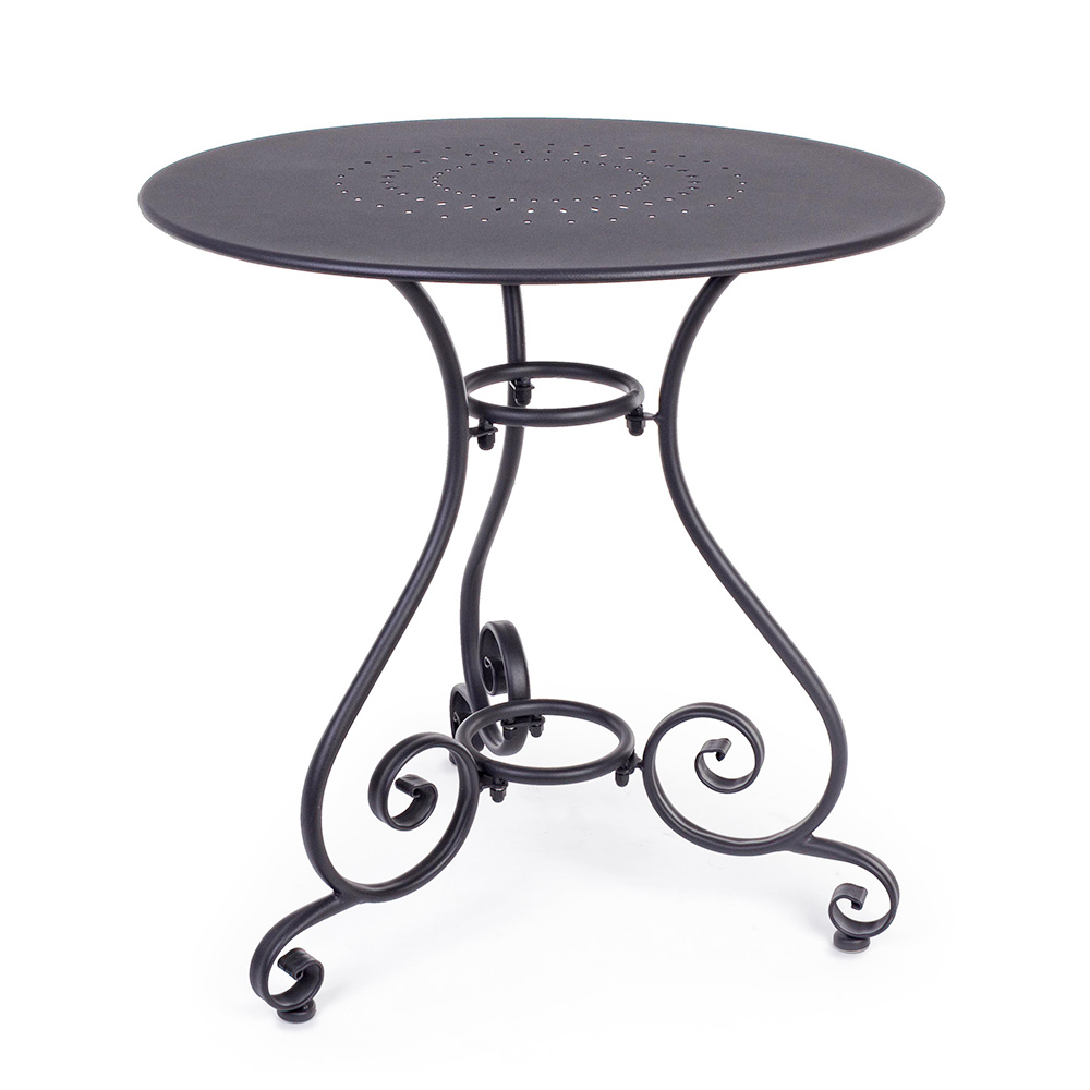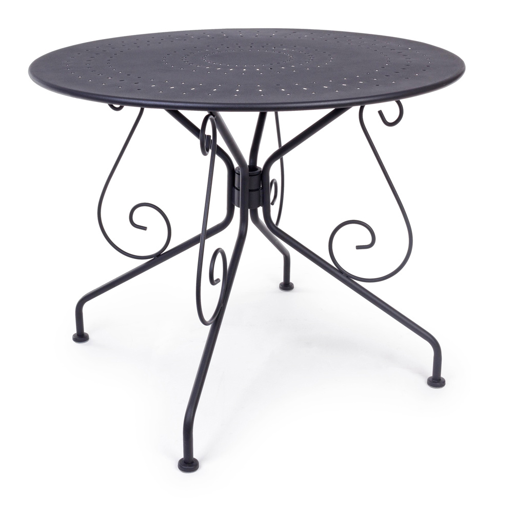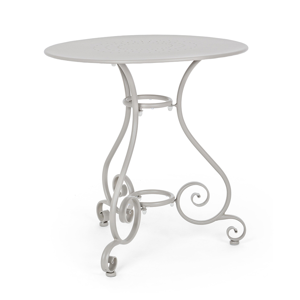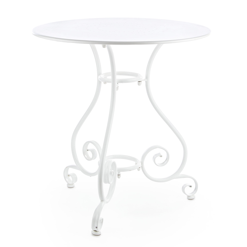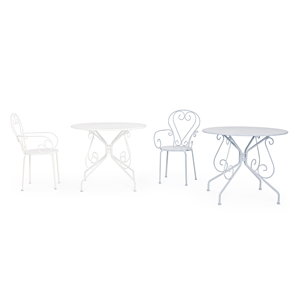 Table ronde pour l'extérieur de style Shabby Chich en acier peint et disponible en deux tailles différentes.