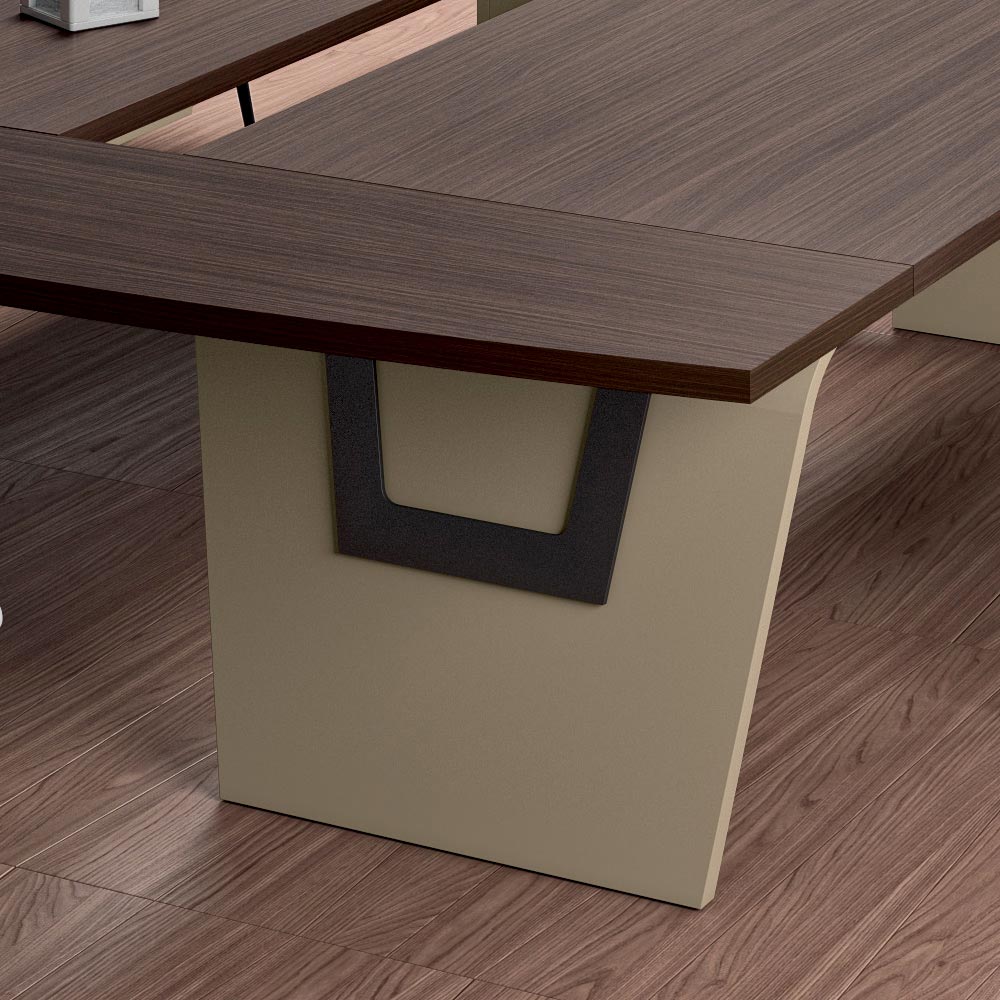 Le plateau se compose de 4 plateaux droits et de deux extensions latérales, qui ferment le périmètre du plateau, créant une table de réunion imposante et élégante.