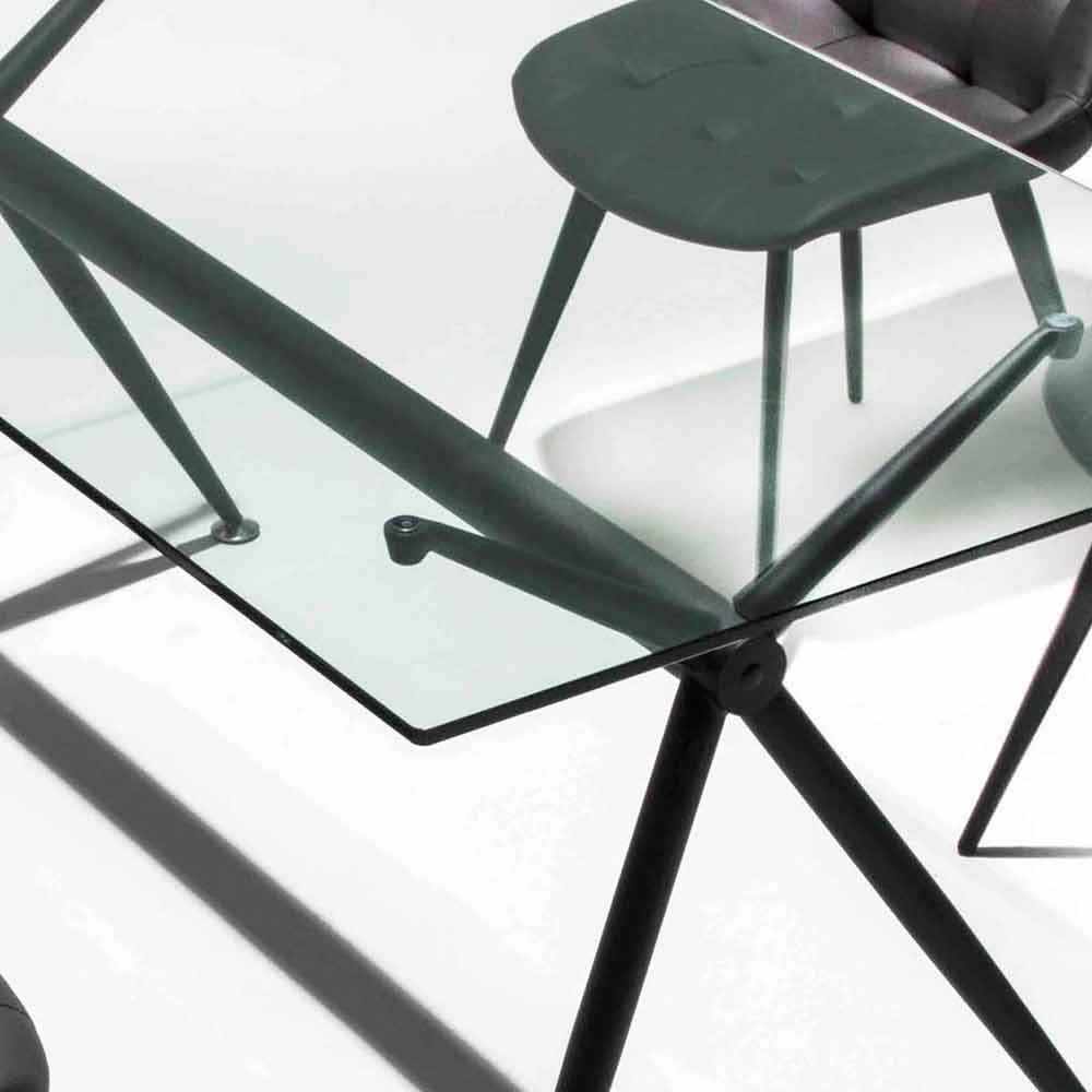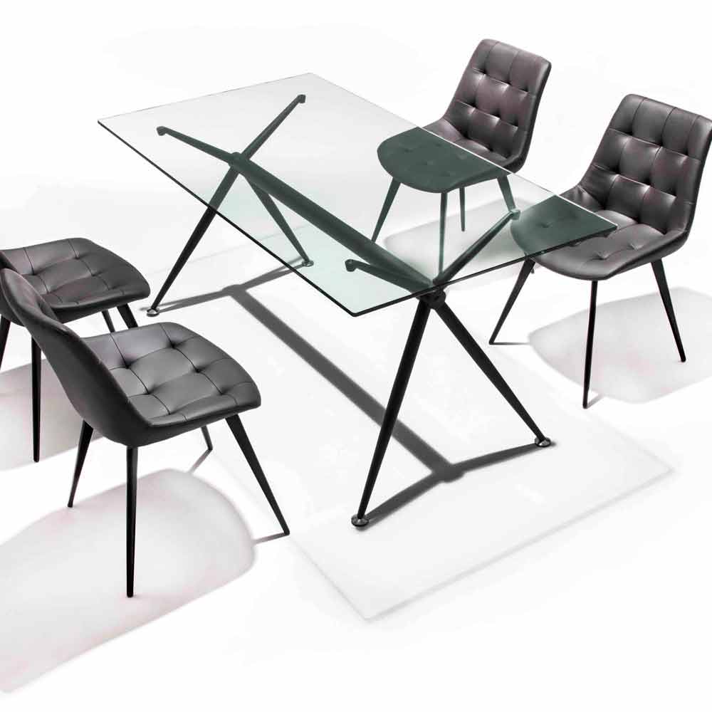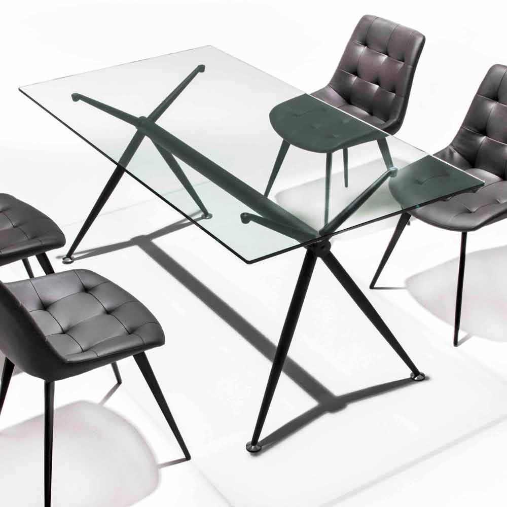 Table de salle à manger avec plateau en verre trempé transparent Thor La table Thor a un design moderne et elle est parfaite pour décorer la cuisine ou la salle à manger avec un style minimal.