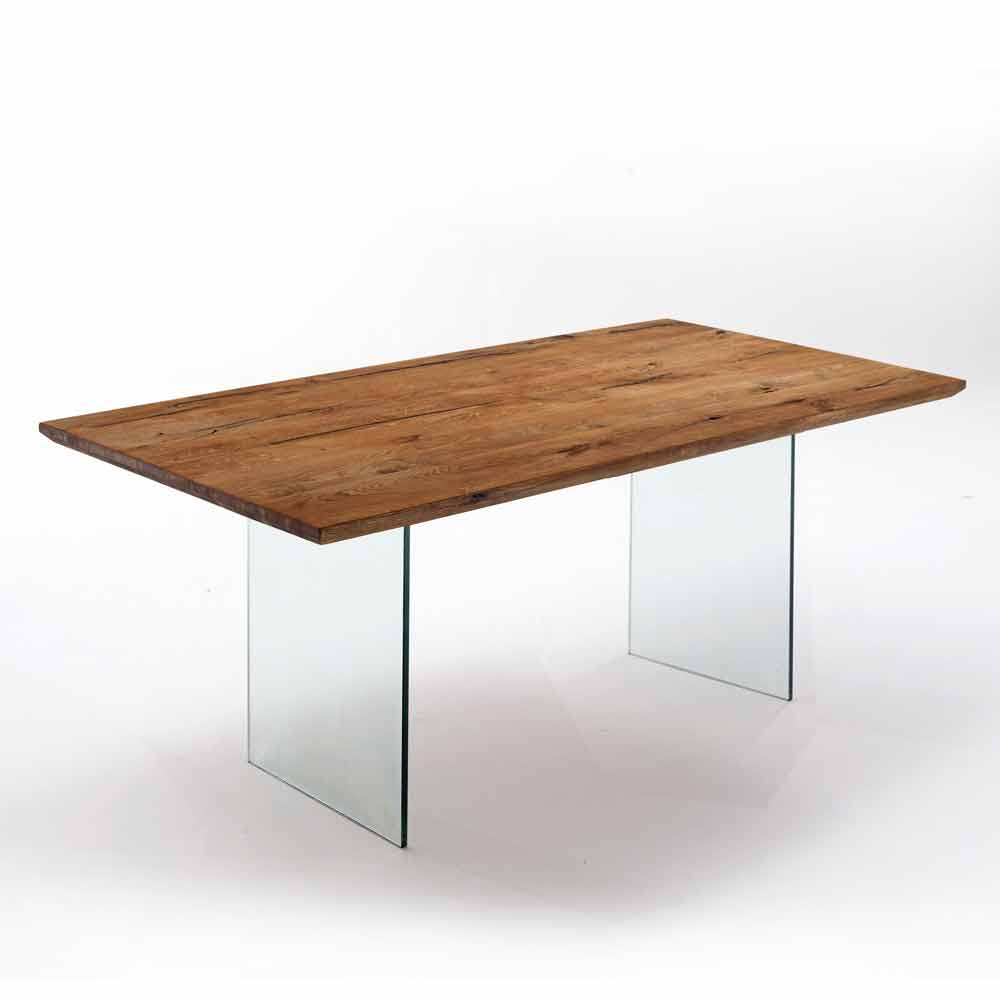 Table de salle à manger en bois massif avec pieds en verre trempé Tito