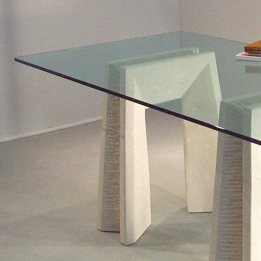 Table de salle à manger en cristal, base en pierre de Vicenza Arianna