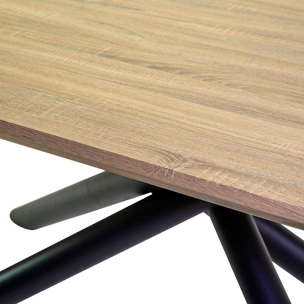 Le plateau en MDF à l' aspect bois naturel confère chaleur et caractère au meuble, créant un contraste visuel harmonieux avec le métal foncé. Sa surface lisse et spacieuse offre un espace idéal pour accueillir famille et amis , s'adaptant parfaitement à tous les intérieurs, de la salle à manger au salon moderne , en passant par les espaces professionnels tels que les restaurants ou les bureaux.