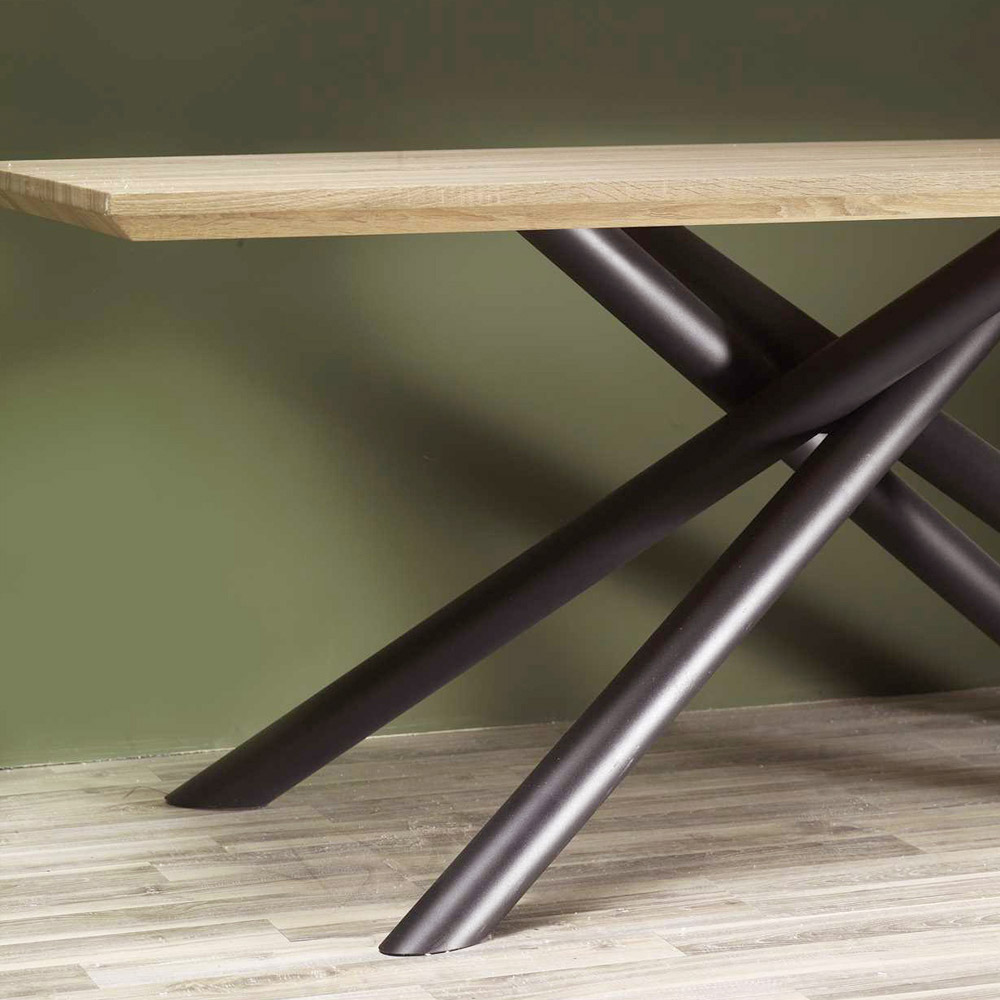 Cette table contemporaine allie à la perfection élégance et fonctionnalité . Son piètement en métal noir thermolaqué lui confère une base robuste et stable , mise en valeur par les lignes géométriques de ses pieds croisés, qui lui apportent une touche de style industriel raffiné.