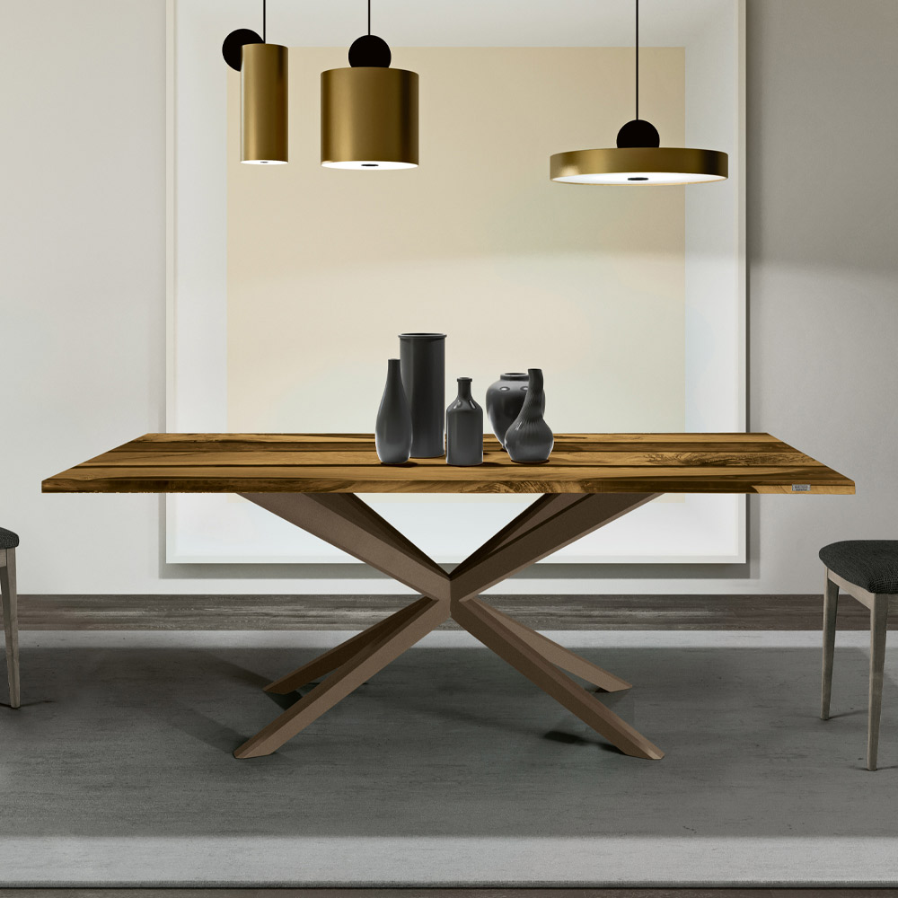 Table à manger rectangulaire avec plateau en bois et résine Made in Italy