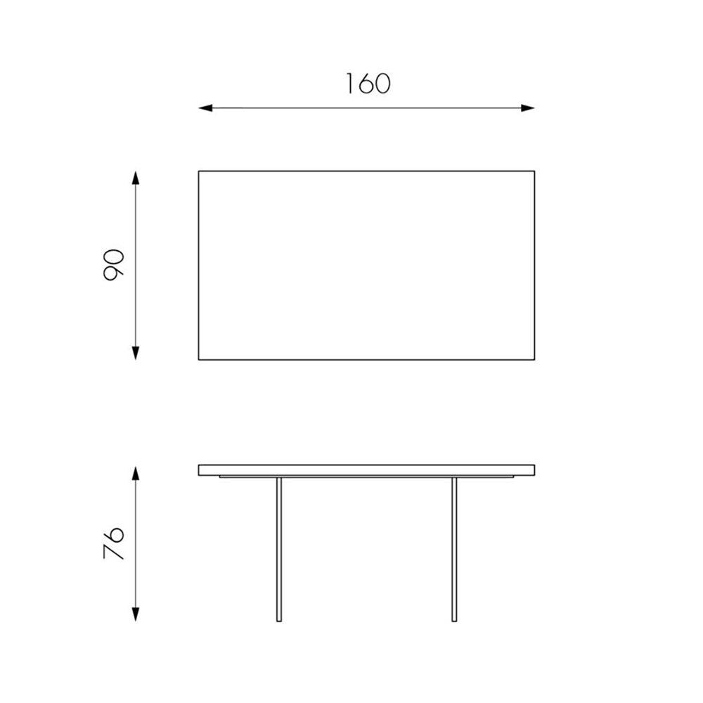 Longueur : 160 cm x Profondeur : 90 cm x Hauteur : 76 cm