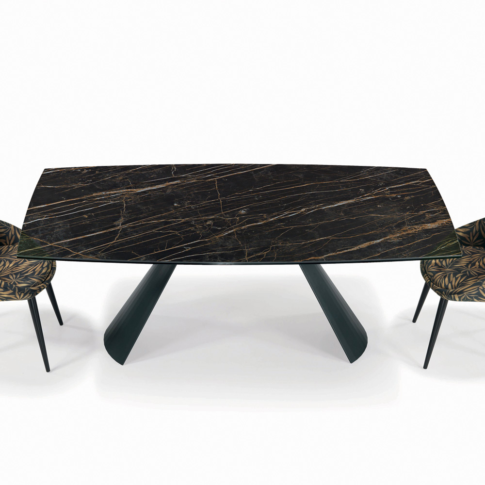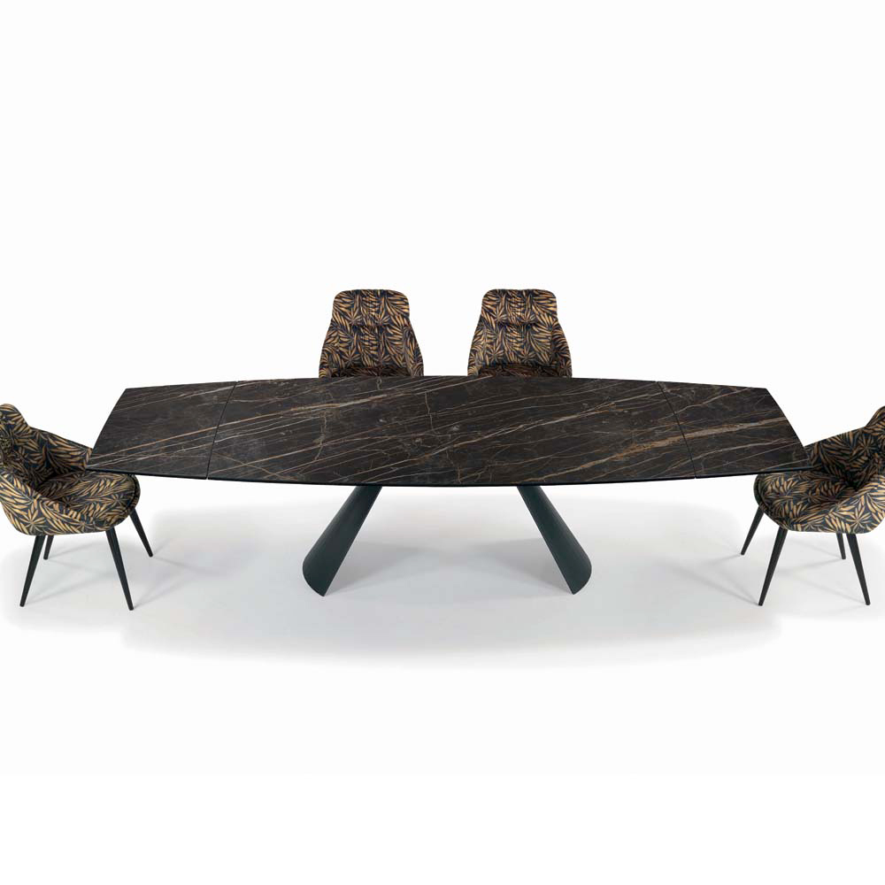 Table de salon extensible de forme tonneau avec rallonges intégrées, avec plateau en céramique , bord droit , piètement en acier laqué et pieds réglables. Le choix de matériaux de première qualité et l' attention portée à la création de chaque détail créent un produit d' excellente qualité Made in Italy . Grâce à la forme de la base et aux finitions disponibles, cette table est le protagoniste de tout environnement contract quotidien , devenant une idée parfaite pour tous ceux qui souhaitent donner à la pièce une touche élégante, somptueuse et unique.