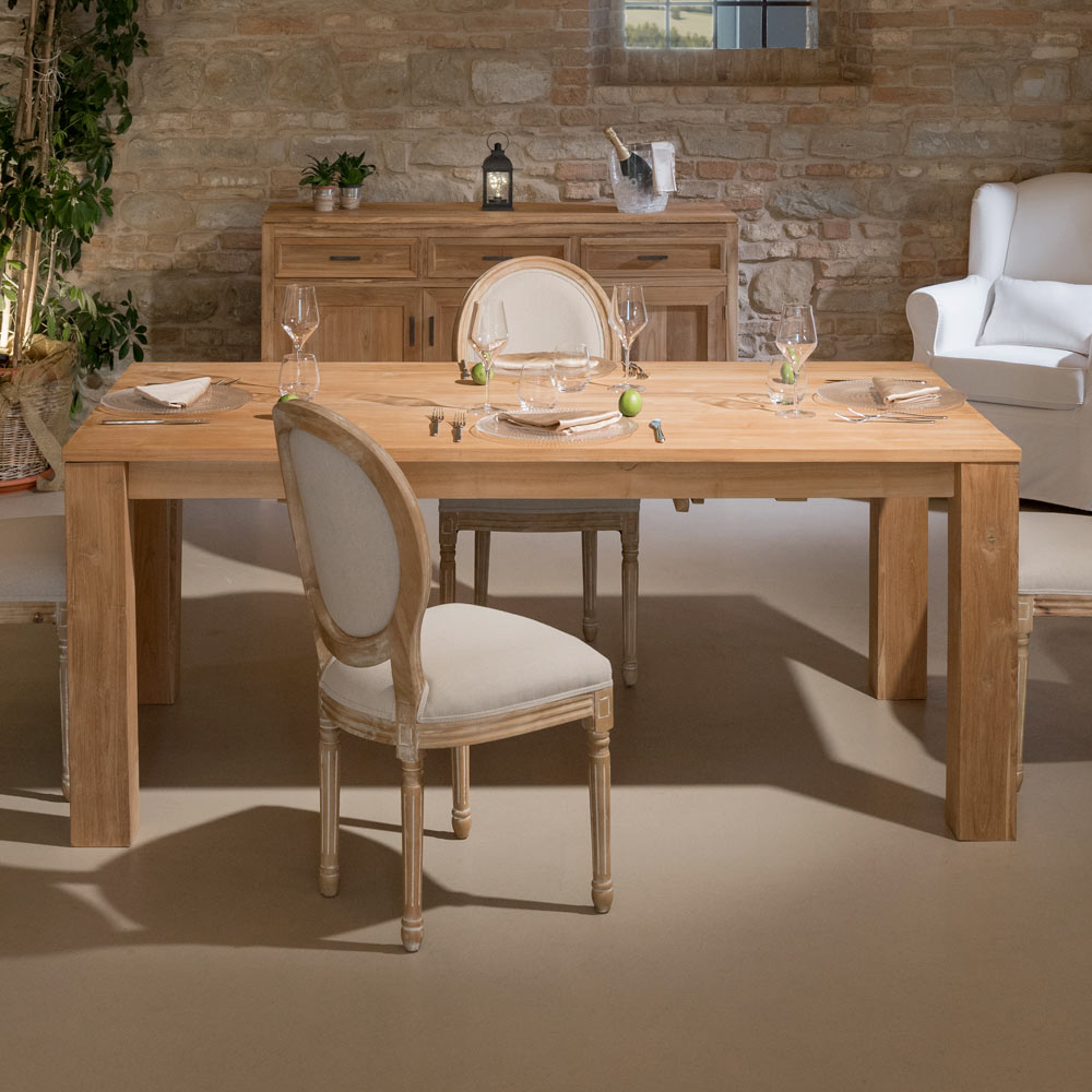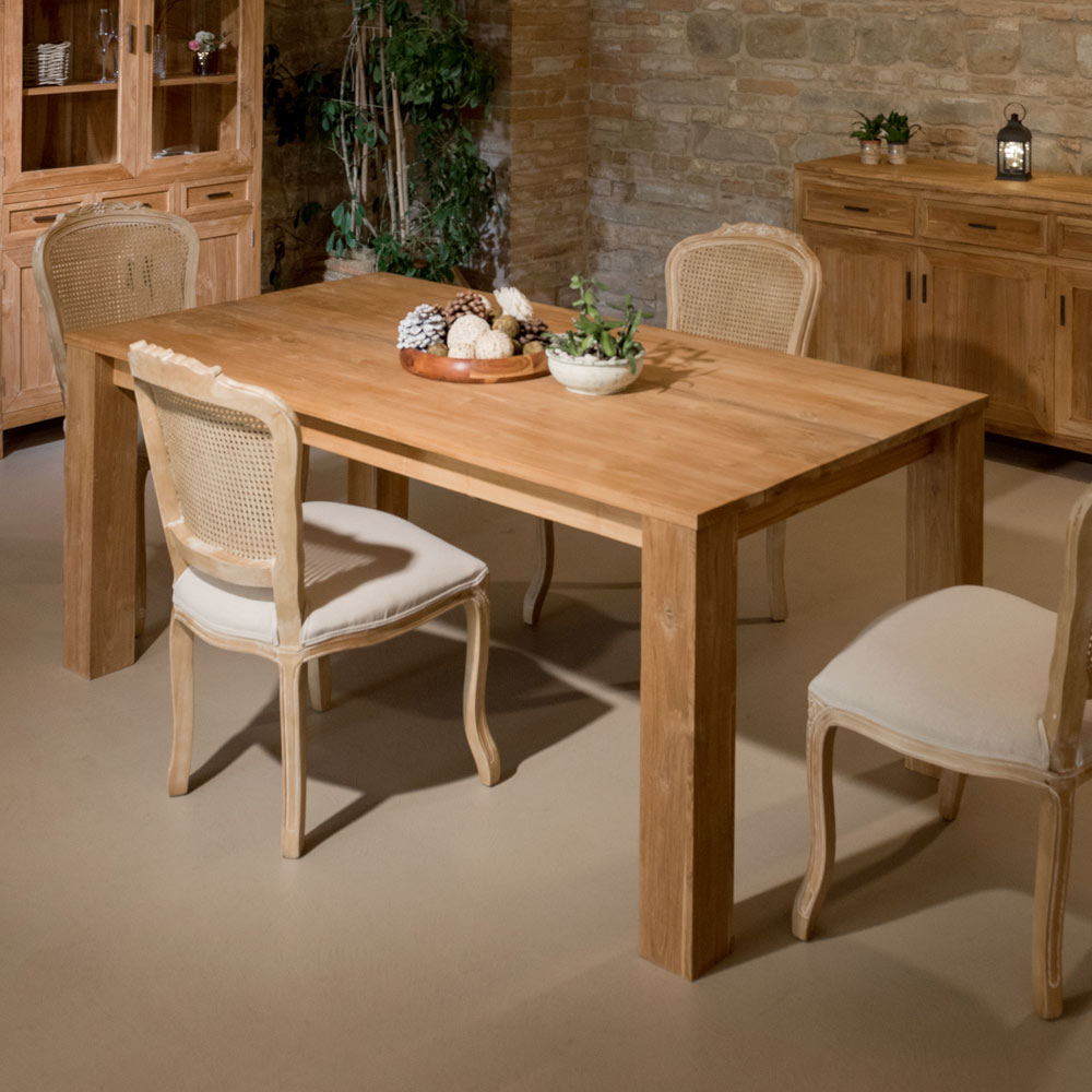 Cette table fixe en teck massif est une pièce robuste et élégante, idéale pour apporter une touche de style à votre salle à manger ou votre cuisine. Sa structure solide et sa fabrication soignée mettent en valeur le grain naturel du bois , créant une ambiance chaleureuse et accueillante.