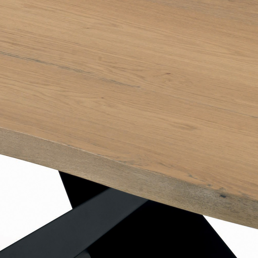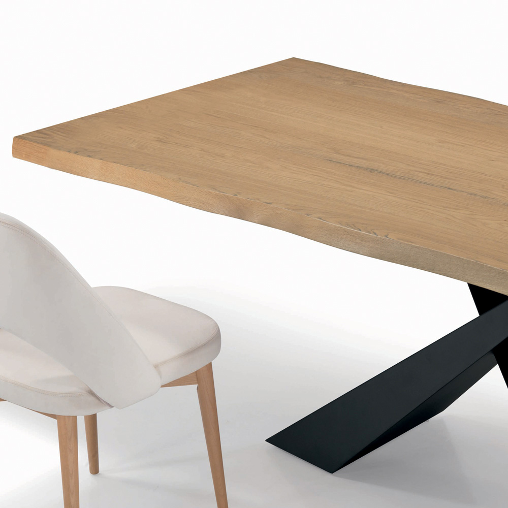 Table de salon fixe avec plateau en bois plaqué , bord écorcé irrégulier , piètement en acier laqué noir et pieds réglables. La forme inhabituelle en X de la base confère à la table une touche unique et raffinée , idéale pour personnaliser et compléter l'ameublement de tout environnement quotidien et contractuel.Des matériaux d'excellente qualité et une précision de fabrication sont les qualités de cette table qui garantit toute la fonctionnalité du Made in Italy.