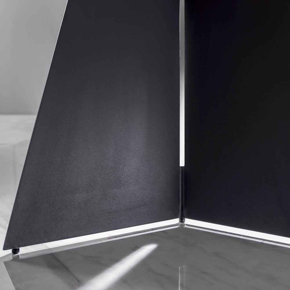 MEDUNO est disponible: structure acier laqué noir et plateau grès cérame marbre gris brillant.
