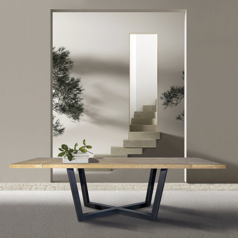 Table à manger en bois massif précieux qui offre deux options de plateau unique pour satisfaire tous vos besoins.