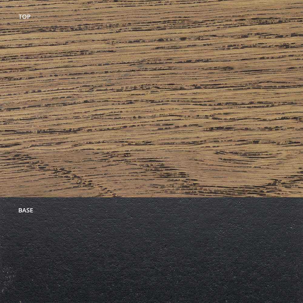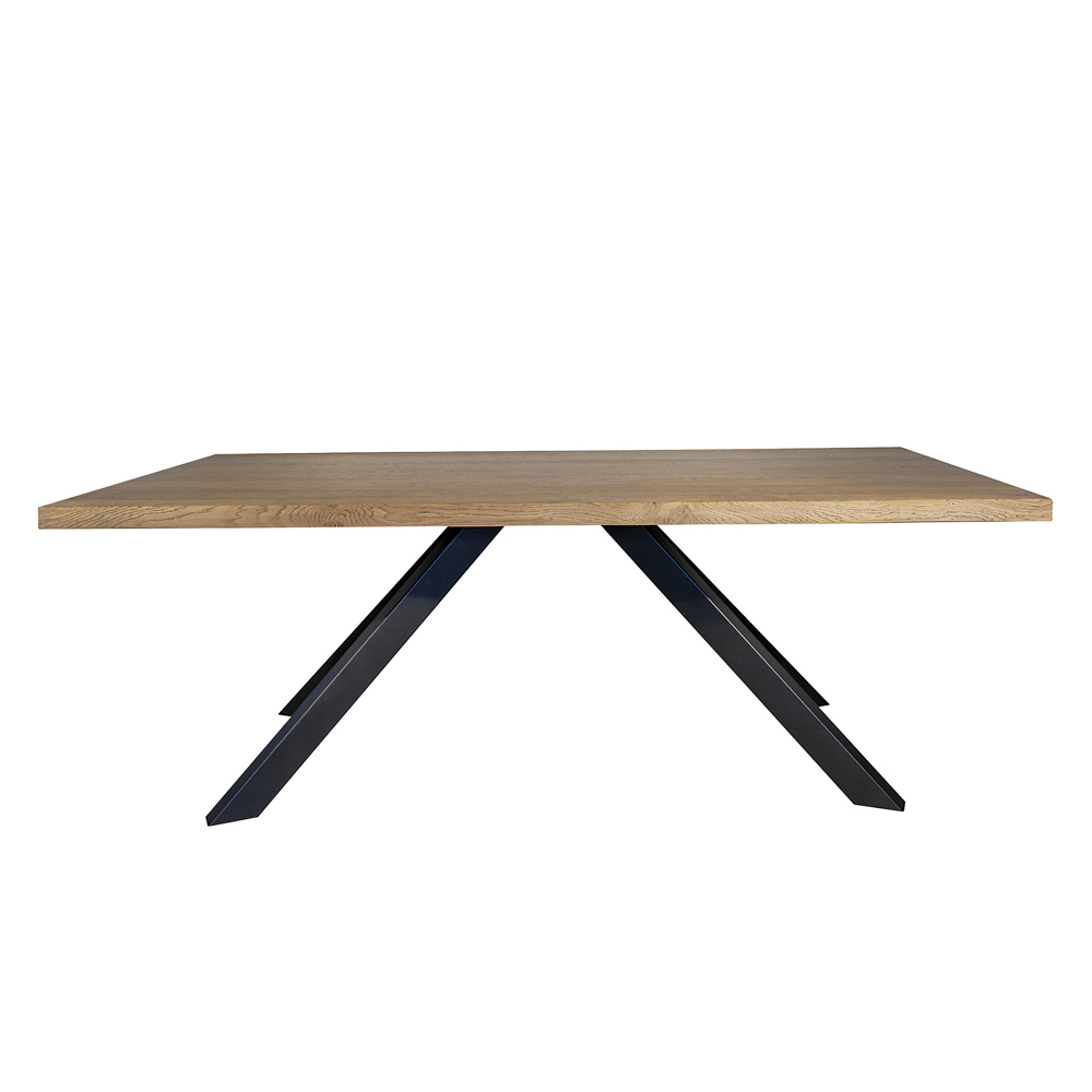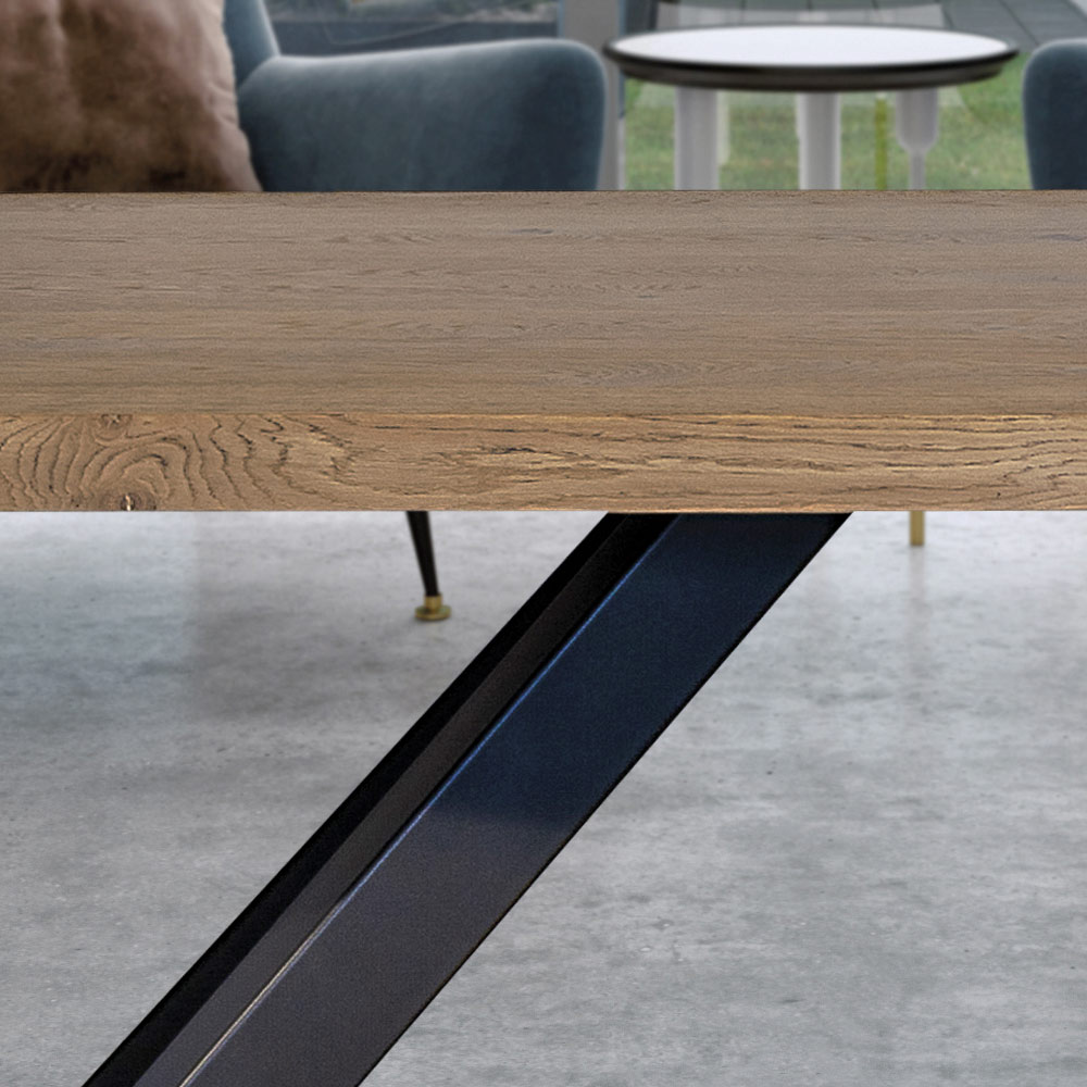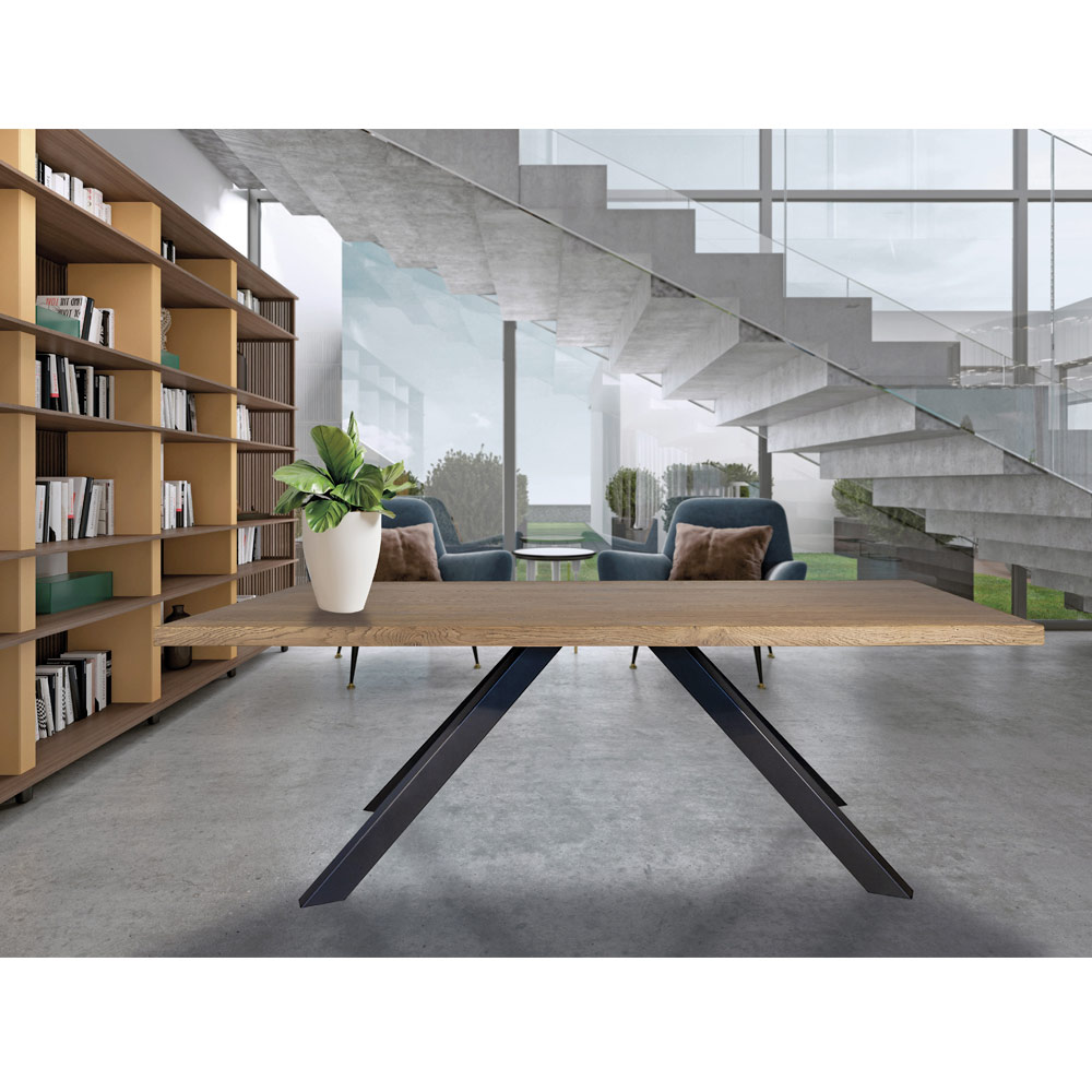 Table en bois en placage de chêne écorcé noué et piètement en métal Made in Italy.