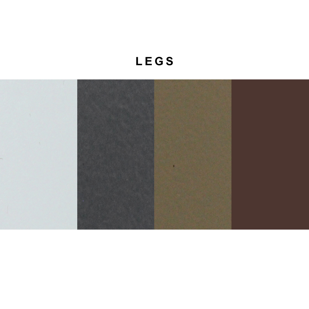 Le plateau et la base de la table peuvent être personnalisés avec différents échantillons de finitions ou des laques RAL.