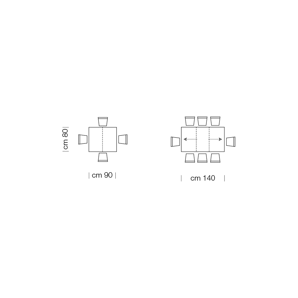 Mesures- L 90 (140) x P 80 x H 77 cm 8 places extensibles avec une rallonge interne de 50 cm ;