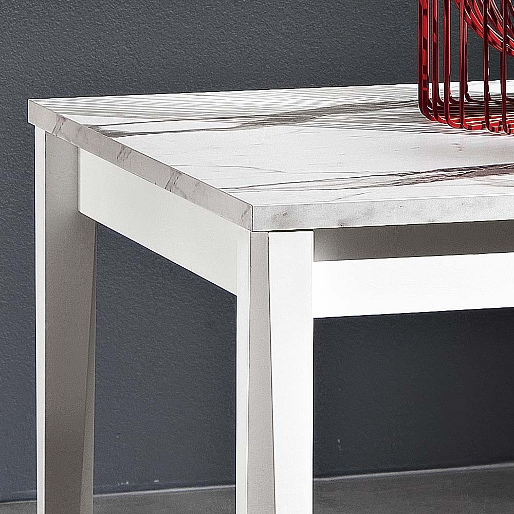 Table à manger avec plateau extensible en mélamine (épaisseur 22 mm) et pieds en hêtre massif laqué blanc mat , fabriquée en Italie . Un meuble soigneusement conçu pour exprimer au mieux les tendances actuelles dans le domaine du mobilier et de la vie quotidienne. Une esthétique extraordinairement riche, où chaque élément incarne des caractéristiques uniques, au nom d'un style toujours raffiné, innovant et jamais banal. L'aspect fondamental est l'équilibre parfait entre design et praticité, qui garantit un impact très fort dans tous les contextes.