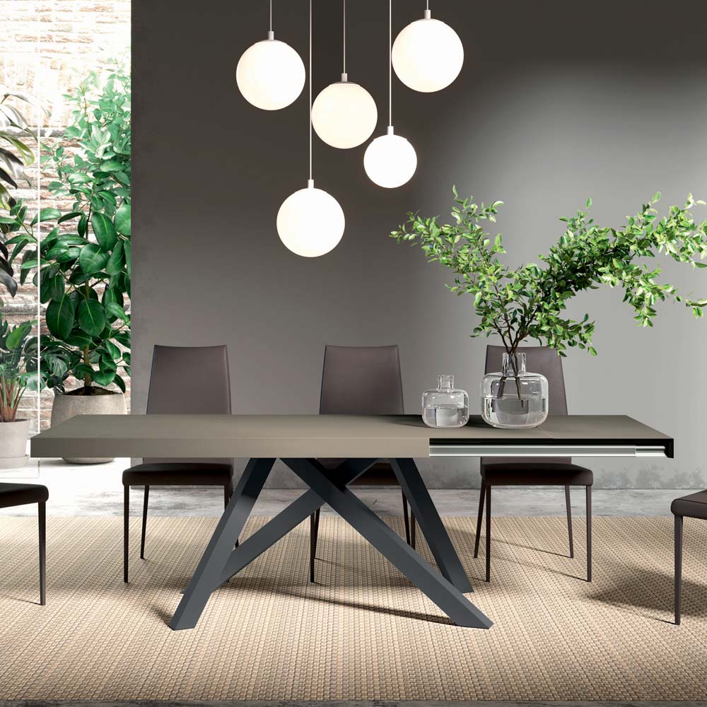 Table de salon extensible à ouverture latérale synchronisée (rallonges internes),plateau en mélamine finition mortier gris tourterelle, bord rabattable , piètement en acier laqué graphite avec pieds réglables. Style moderne et élégance se rencontrent dans ce produit qui complète et rend unique chaque environnement domestique et contractuel. Grâce aux finitions et aux matériaux choisis, toute la qualité du Made in Italy est garantie et un produit non seulement beau mais aussi fonctionnel et pratique.