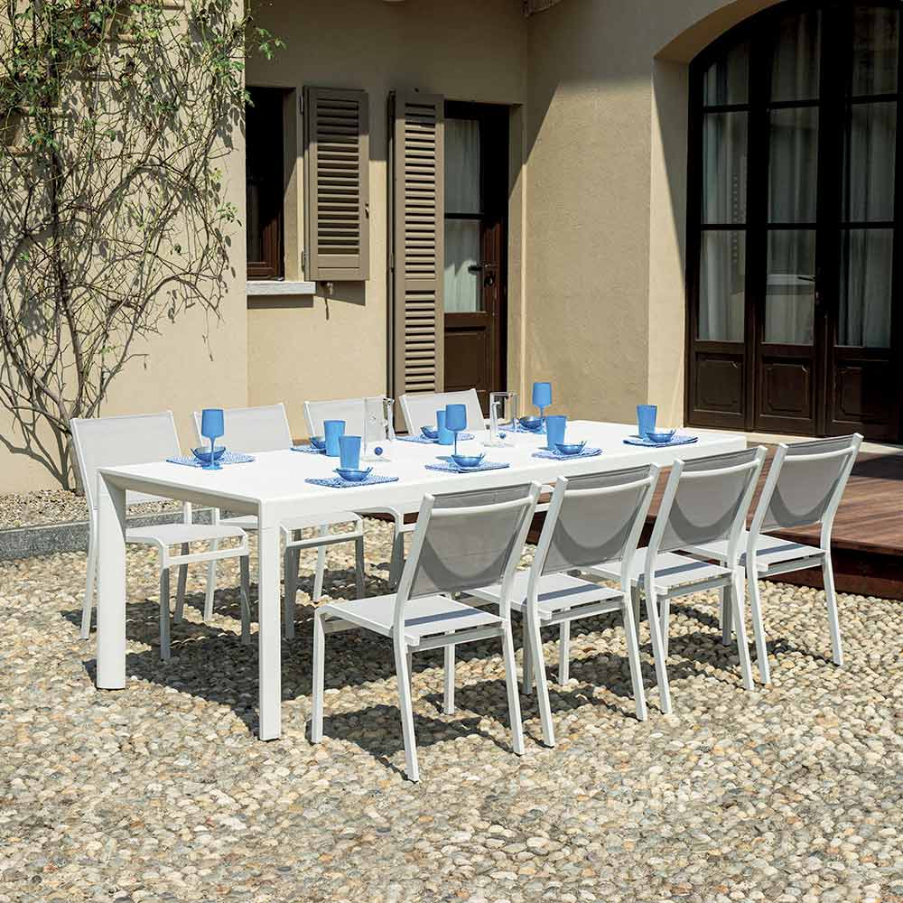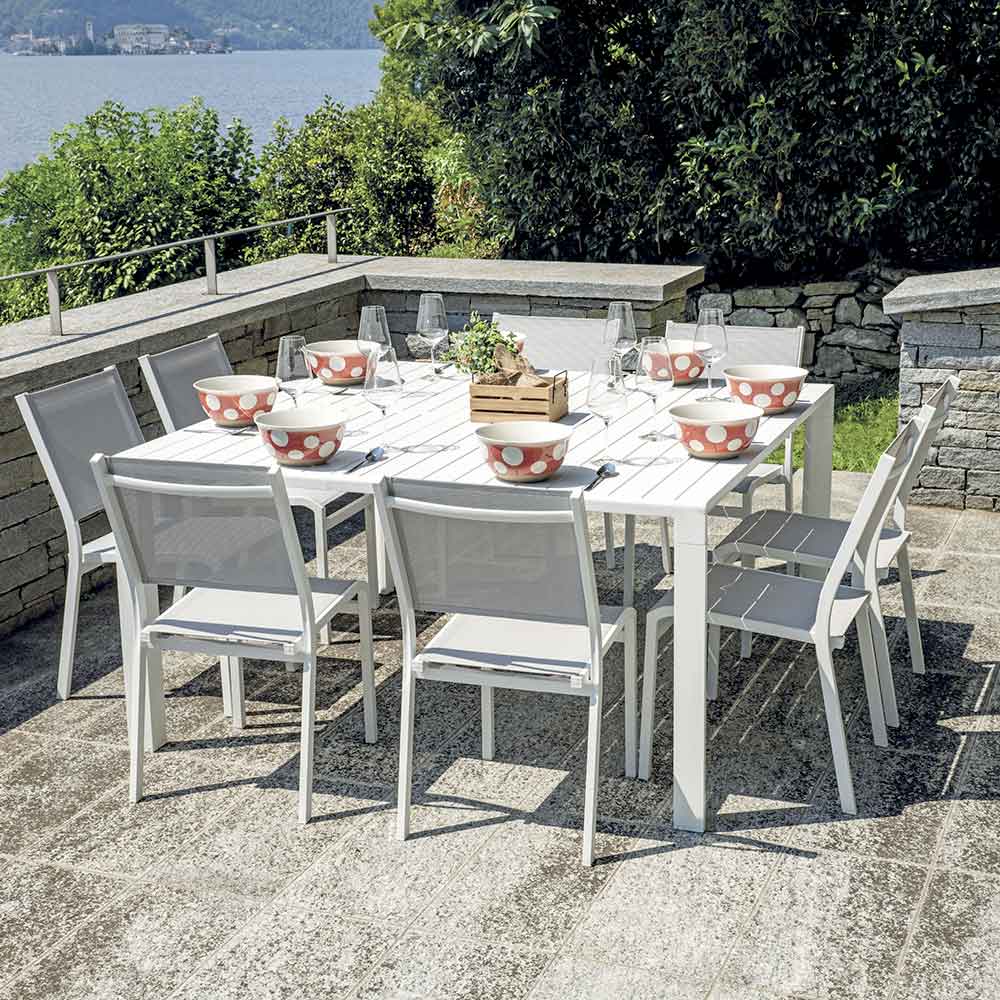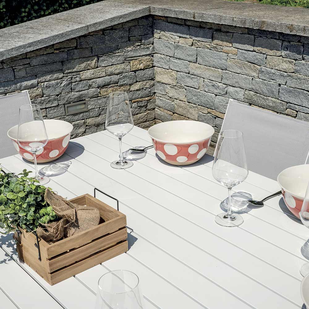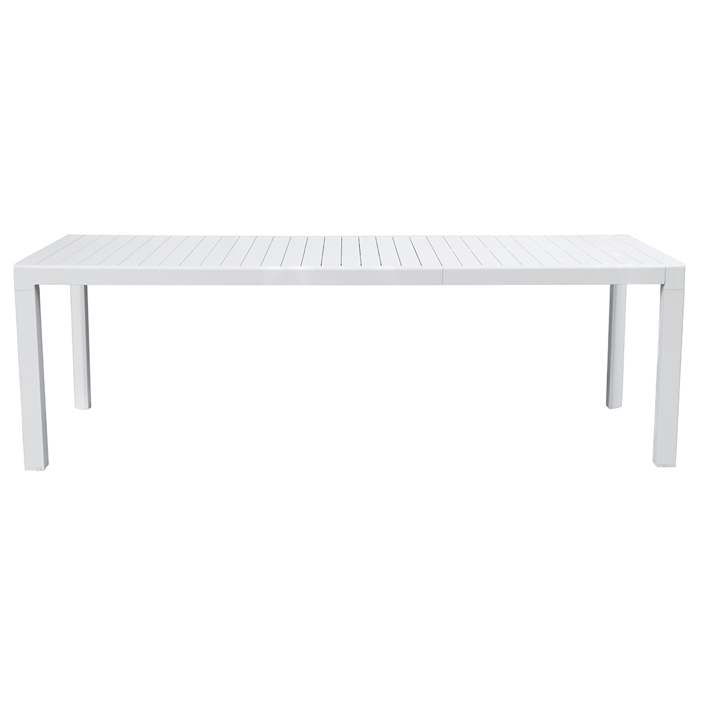 Élégance, robustesse et praticité se rencontrent dans cette table en aluminium blanc avec plateau à lattes, un meuble qui allie fonctionnalité et style moderne. Sa finition blanche et ses lignes épurées lui permettent de s'adapter à tous les espaces extérieurs, du jardin à la terrasse, en apportant une touche de sophistication intemporelle.