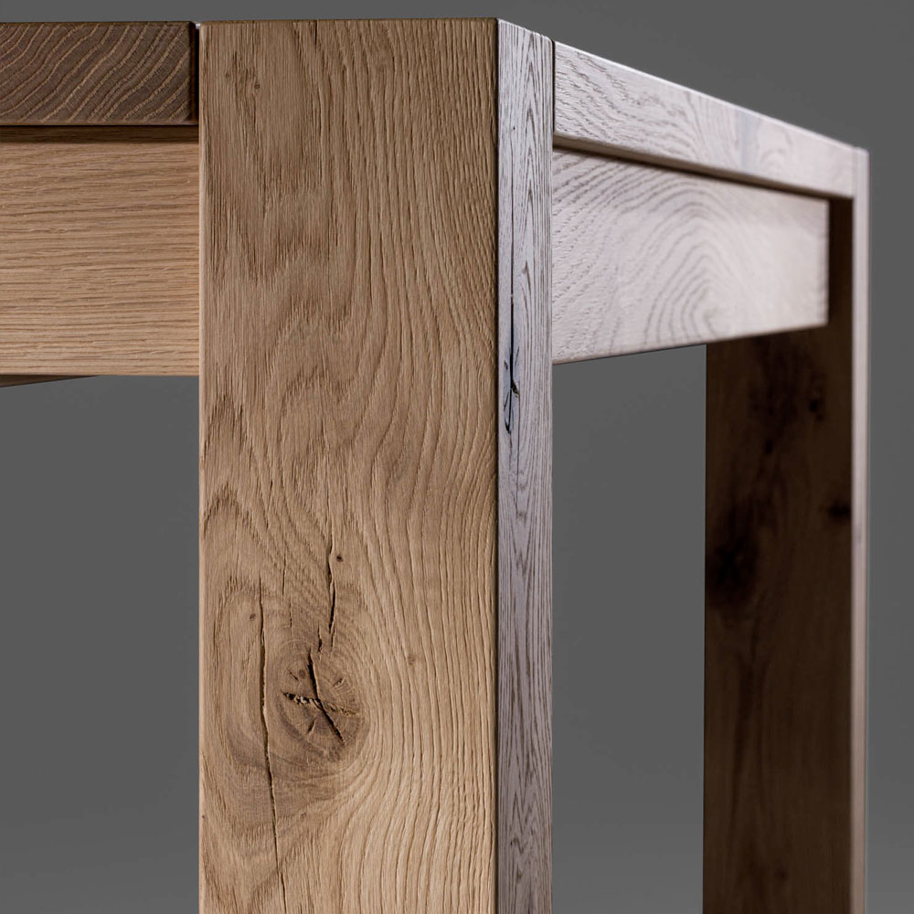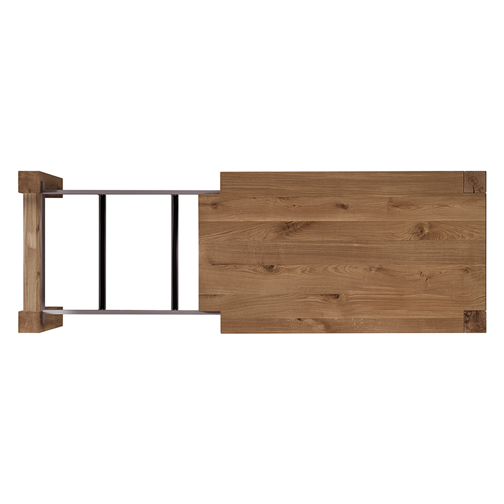 Table à rallongeavec plateau en latté plaqué chêne naturel et pieds plaqués stratifié, 12x12cm. Les extensions sont incluses .