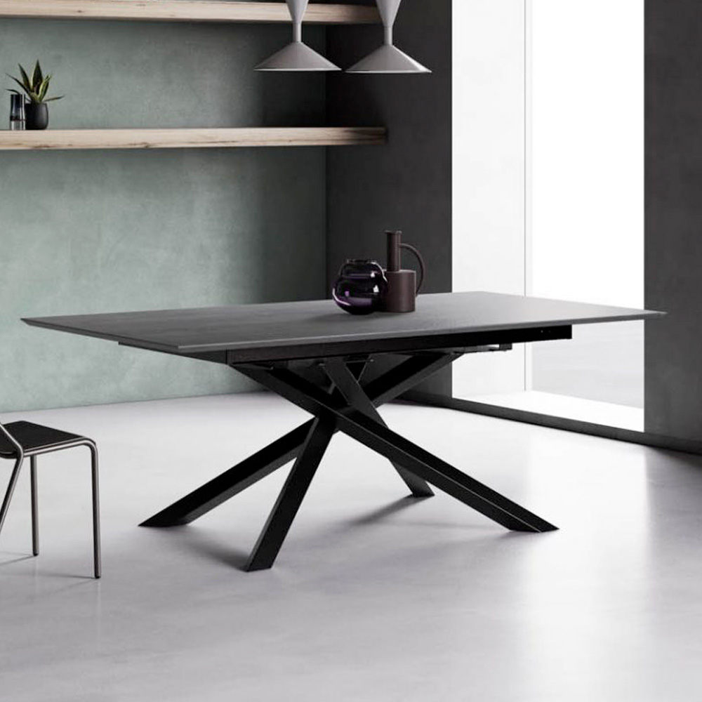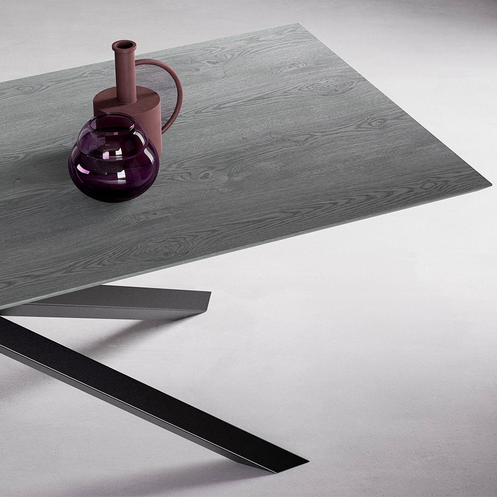 Table extensible avec plateau en chêne gris et pieds graphite Fabriquée en Italie.
