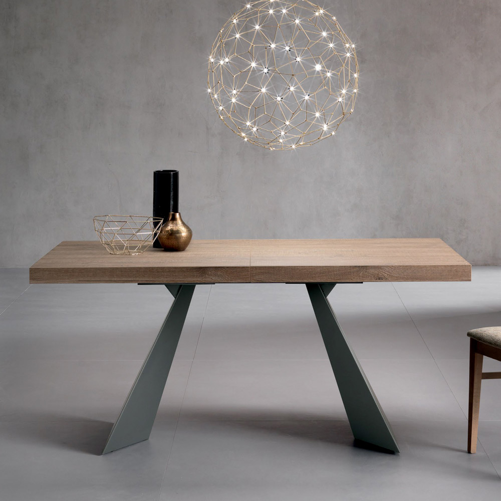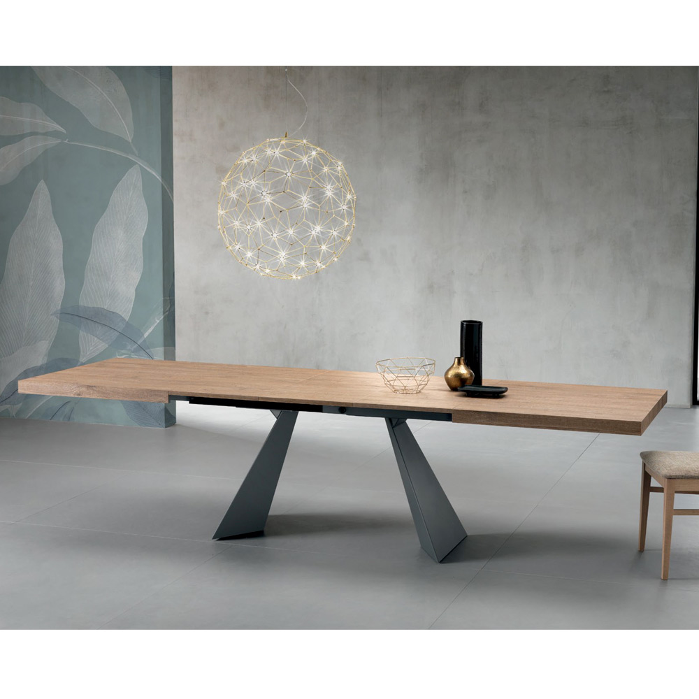 Table rectangulaire extensible avec plateau pliant en stratifié de 60 mm d'épaisseur.