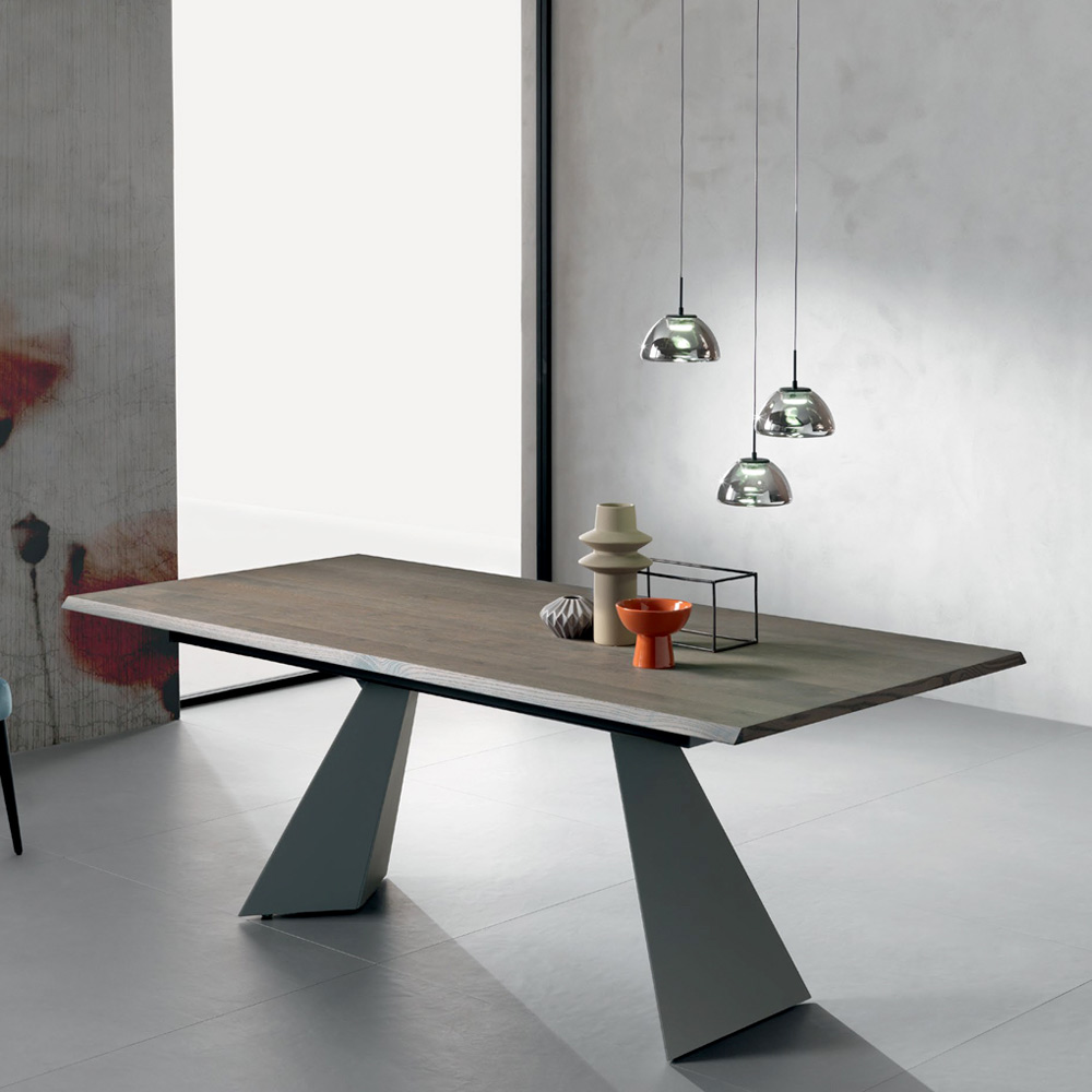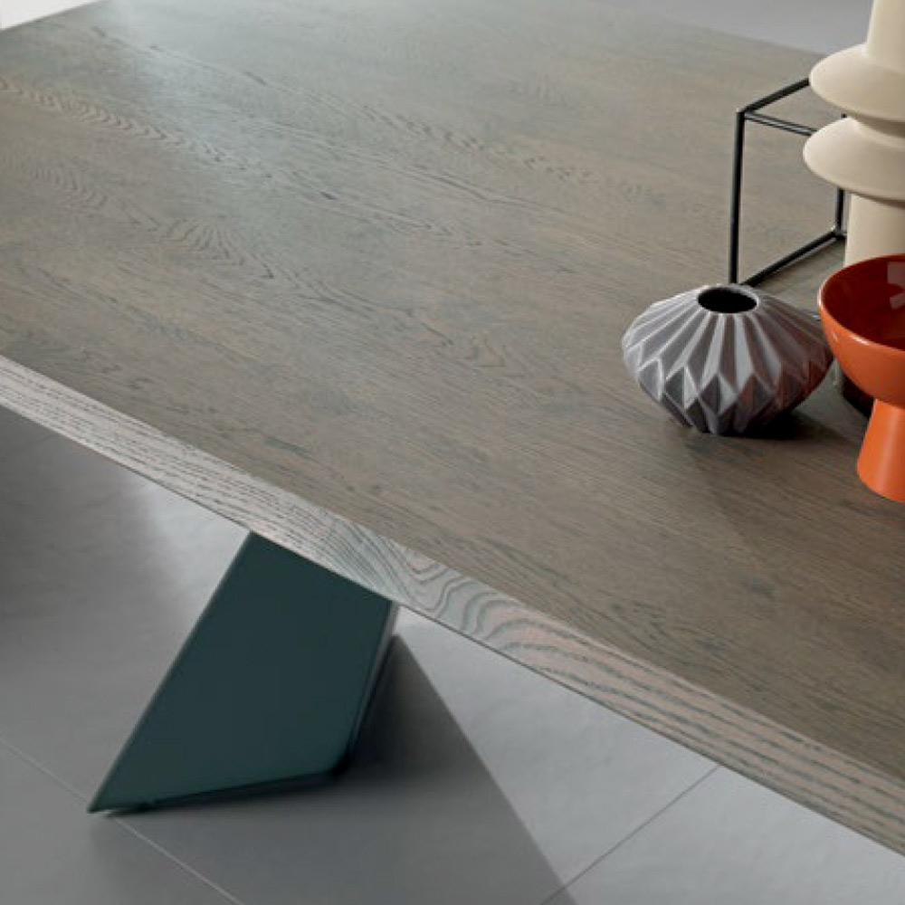 Cette table allie créativité architecturale et sophistication contemporaine , transformant n'importe quelle pièce en un espace élégant . Le plateau en placage de chêne exprime toute la beauté du grain naturel , tandis que le bord fin et légèrement incliné apporte une touche de légèreté visuelle et de modernité.