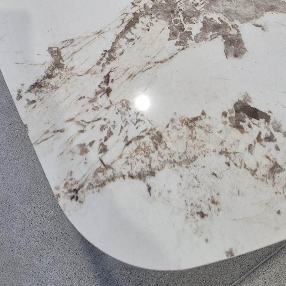 Cette table en grès cérame et métal allie design moderne et matériaux tendance pour créer un meuble au design saisissant. Son plateau en grès cérame effet marbre , avec son grain naturel et sa finition brillante, confère une élégance contemporaine et raffinée à tout espace. Le piètement en métal tressé , aux formes fluides et dynamiques, devient le véritable élément sculptural de la table : à la fois massif et sinueux, il apporte équilibre et personnalité à l’ensemble.