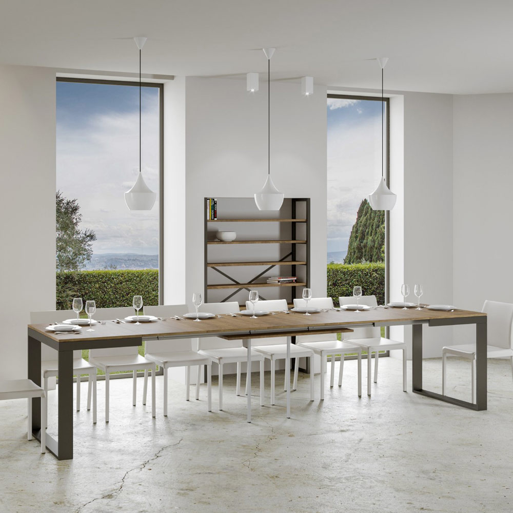 Table à rallonge en bois plaqué et fer fabriqué en Italie
