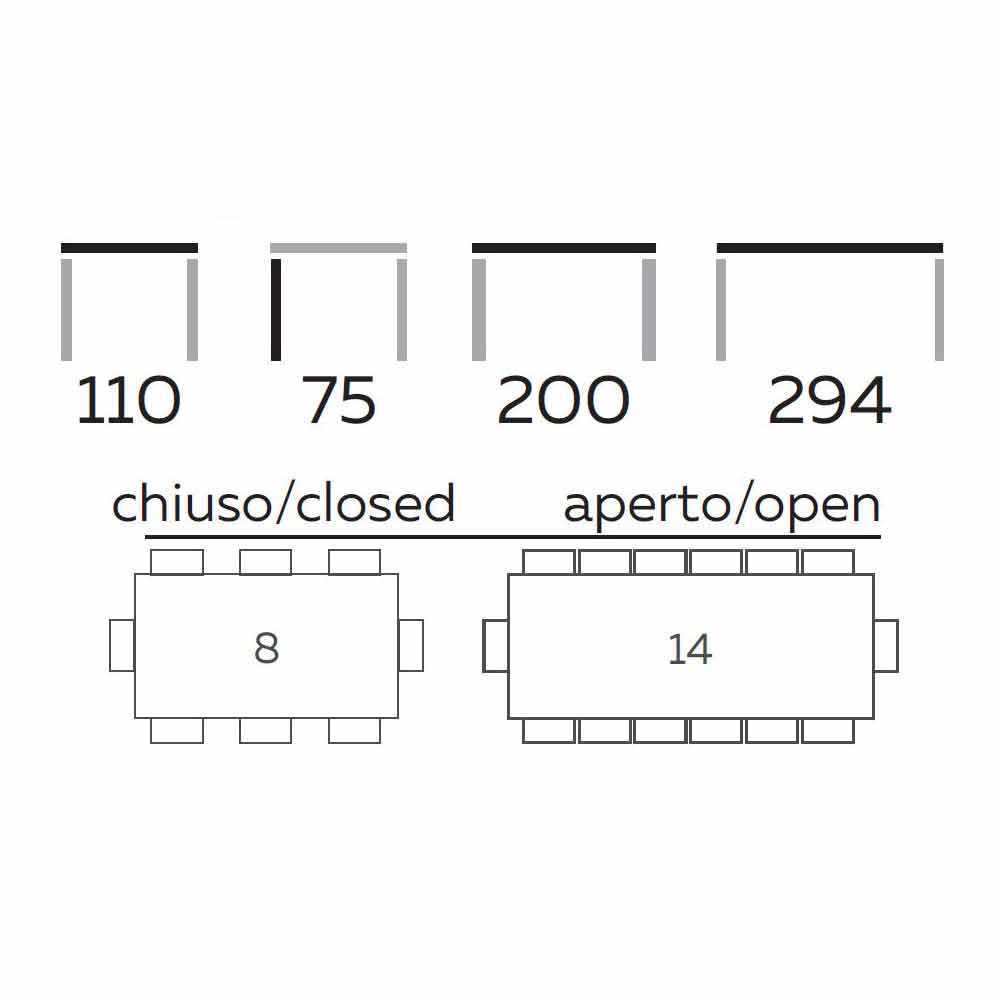 Taille: L 200/294 x P 110 x H 75 cm