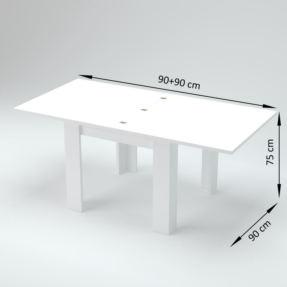 La table à manger pliante extensible a un design carré caractérisé par des lignes épurées et minimales.