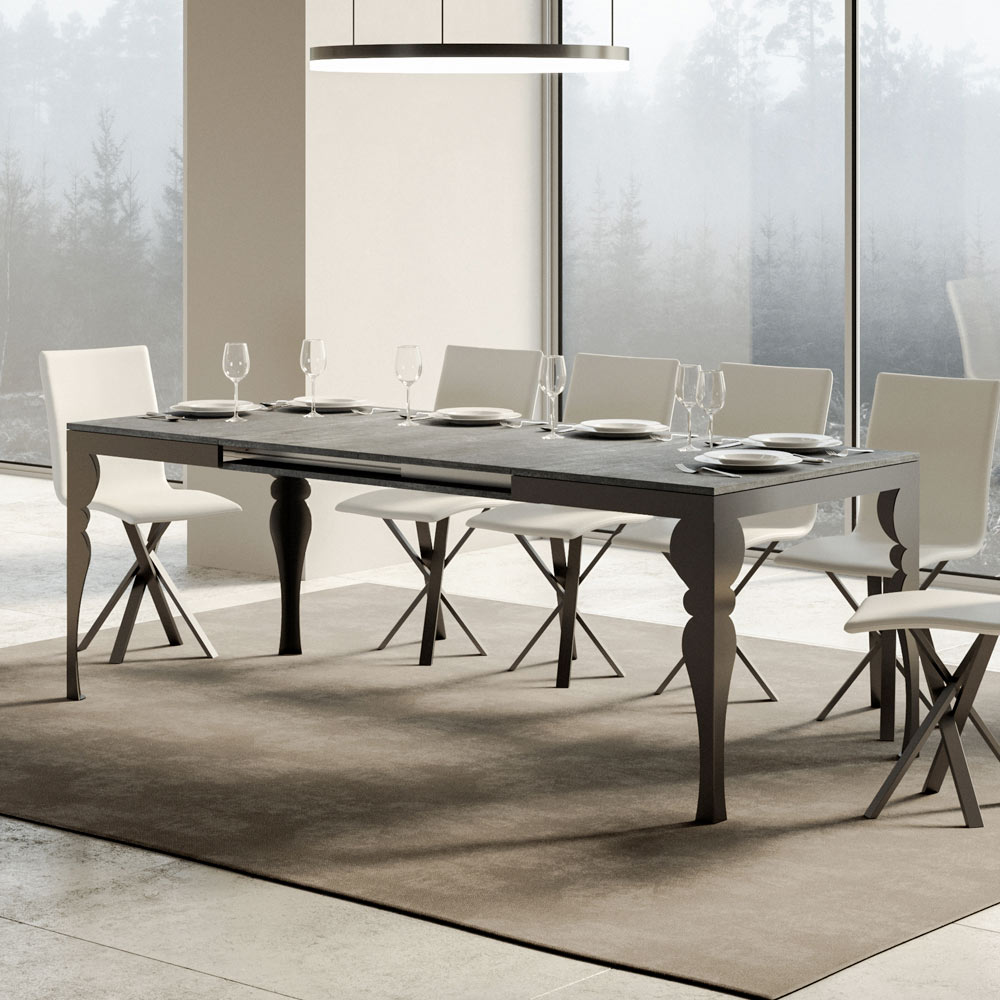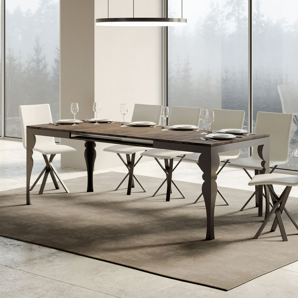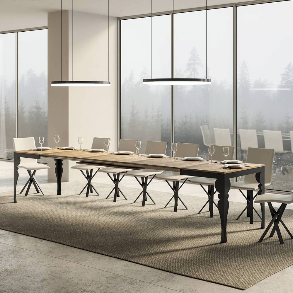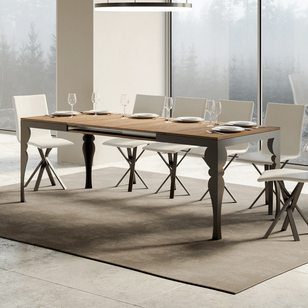 Table à rallonge avec plateau enbois meublé et structure en fer peint anthracite, entièrement Made in Italy.