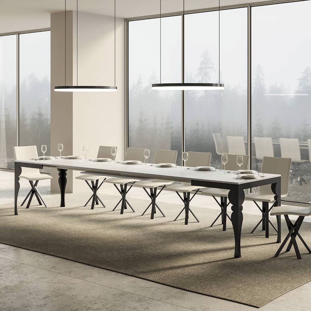 Table Extensible en Bois Mélamine et Dessous du Plateau en Fer Anthracite - Sassone