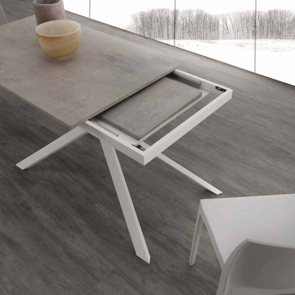 Lecce est réalisé avec une base en métal peint disponible en deux couleurs différentes et un plateau en mélamine disponible en trois couleurs différentes : Base de métal: - Blanc; - Noir. Plateau en bois mélaminé : - Béton classique; - Ciment oxyde; L'extension est incluse dans la structure de la table.