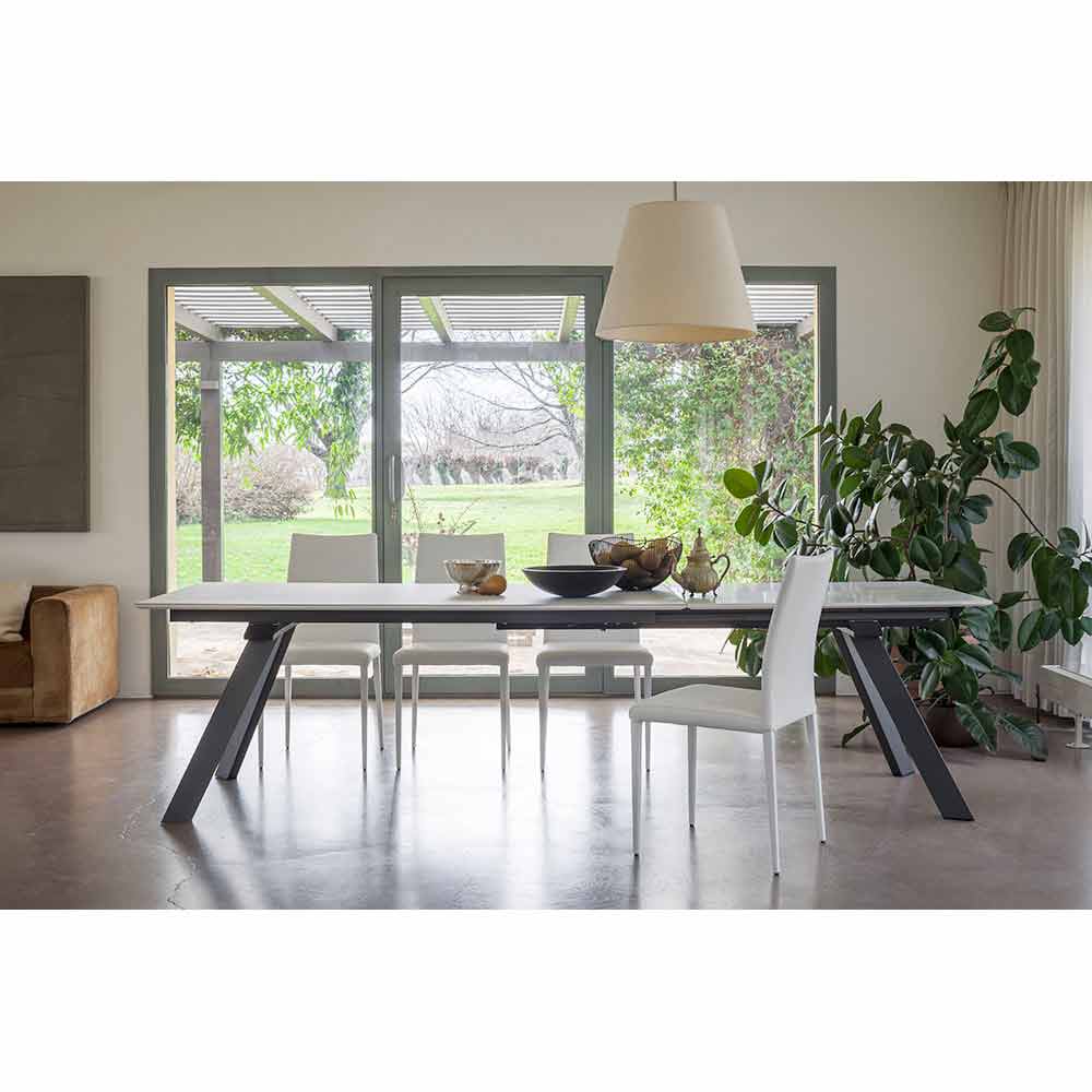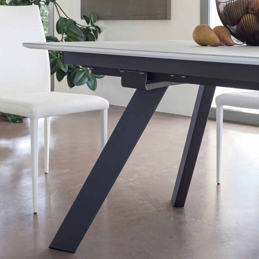 Table à manger extensible en céramique et base en métal fabriquée en Italie.