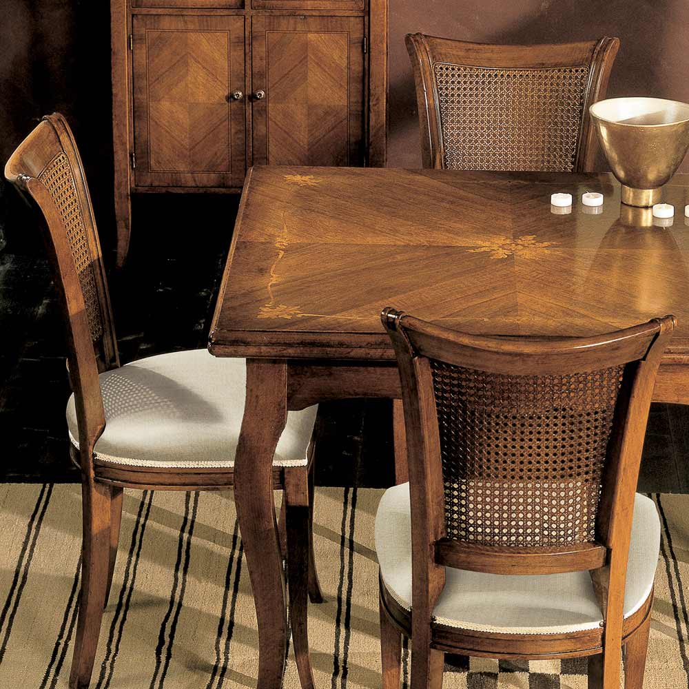 Table de salon avec ouverture pliante et 4 chaises en bois Made in Italy