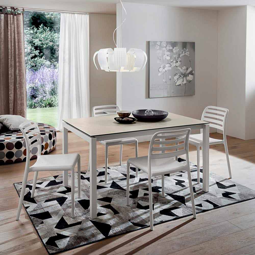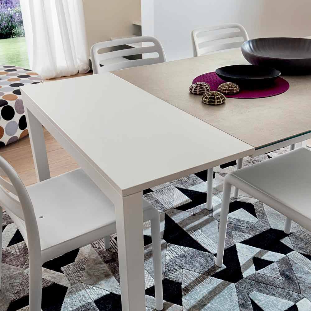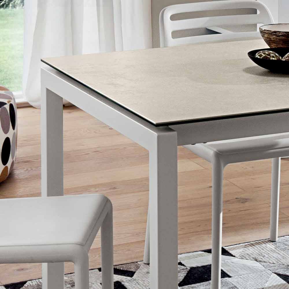 Table de cuisine avec plateau extensible en laminam et métal Made in Italy.