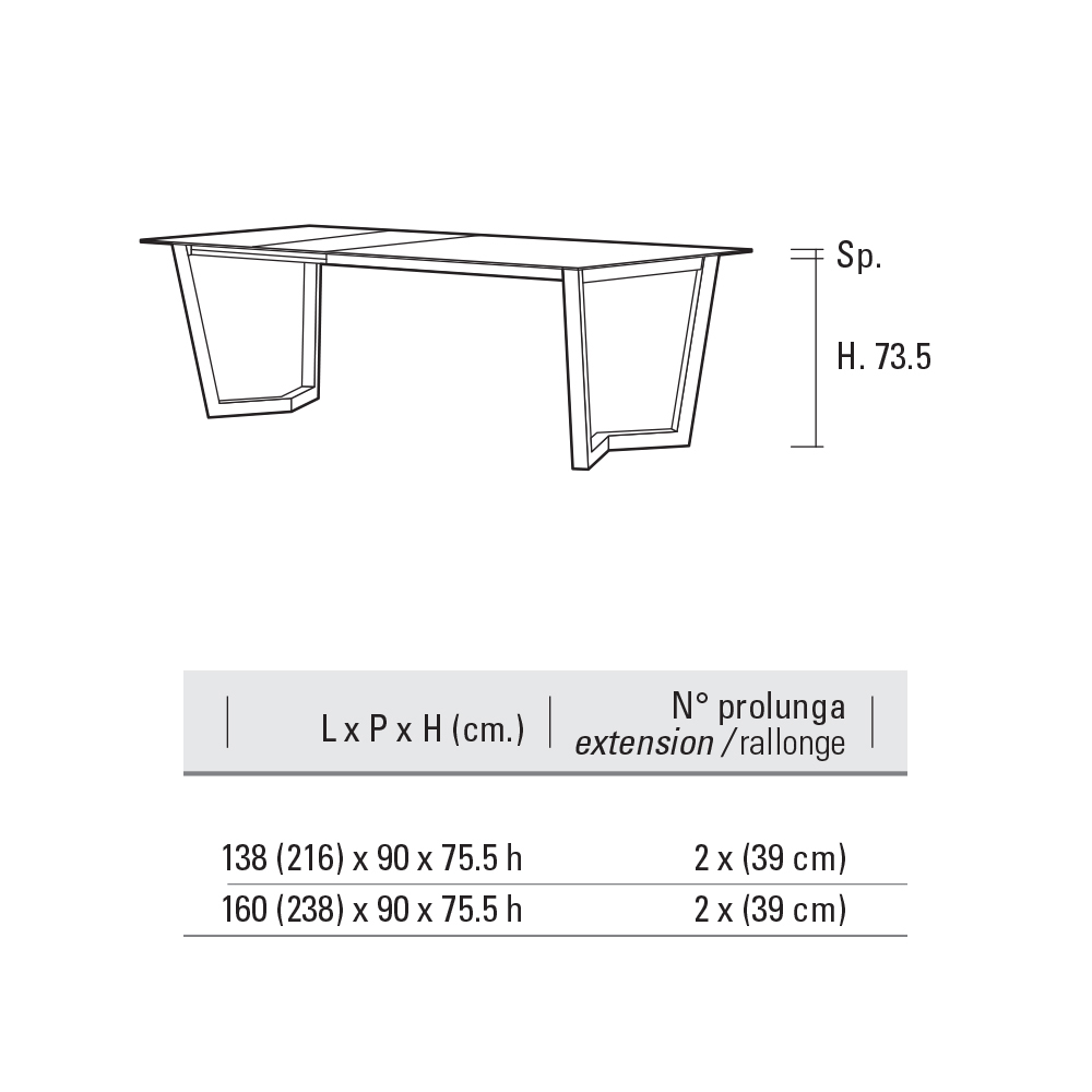 réalisés dans le même matériau que le plateau, ils permettent à ce meuble de s'étendre jusqu'à une longueur maximale de 238 cm, créant ainsi une